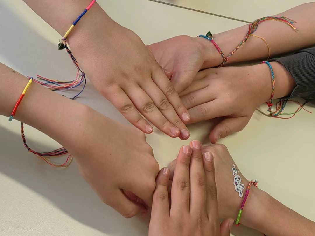 五彩手绳是端午节不可缺少的文化元素,孔院教师马翠华给大家带来了五彩手绳编织体验活动。马老师首先介绍五彩绳的五种颜色,接着又讲解了端午节五彩手绳的来历与传说,最后手把手教大家编织、装饰五彩手绳。短短二十多分钟,人人手上都多了一条有小粽子装饰的五彩手绳。