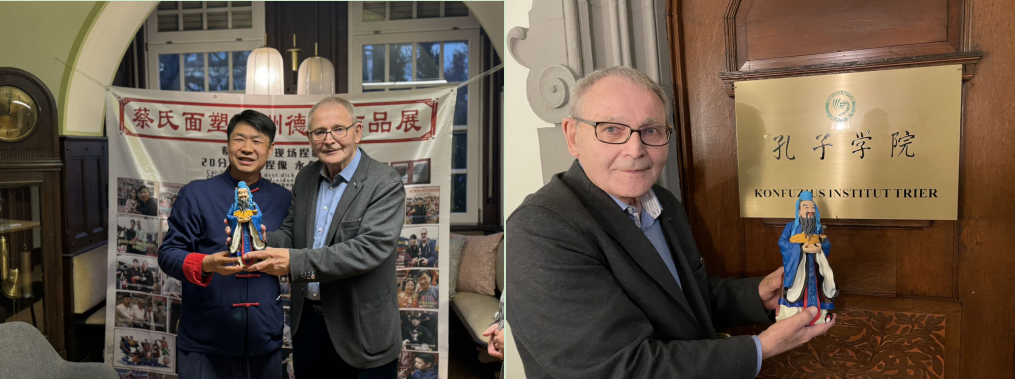 当地时间11月29日14时起,德国特里尔孔子学院在福楼举办了厦门大学第十二届“中国日”文化节特里尔分会场的第二场活动——非遗传承体验:蔡锐军非遗面塑艺术展览、讲座及工作坊。本次活动由特里尔孔子学院中方院长李毅女士主持,特里尔孔子学院理事长、特里尔德中友协会长Peter Dietze出席活动,参会人员二十余人。此处活动特邀中国非物质文化遗产传承人、著名面塑艺术家蔡锐军,为观众呈现了一场精彩的面塑艺术展示,让现场嘉宾深刻感受中华传统手工艺的独特魅力。