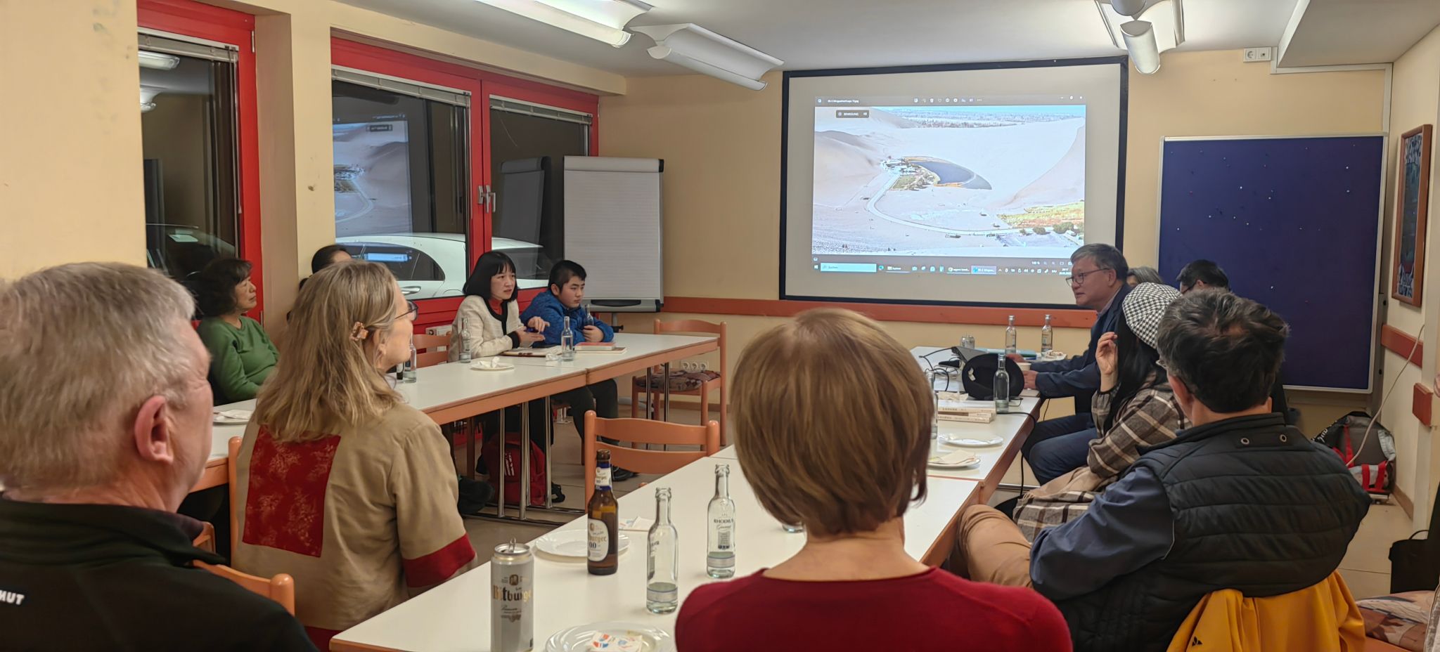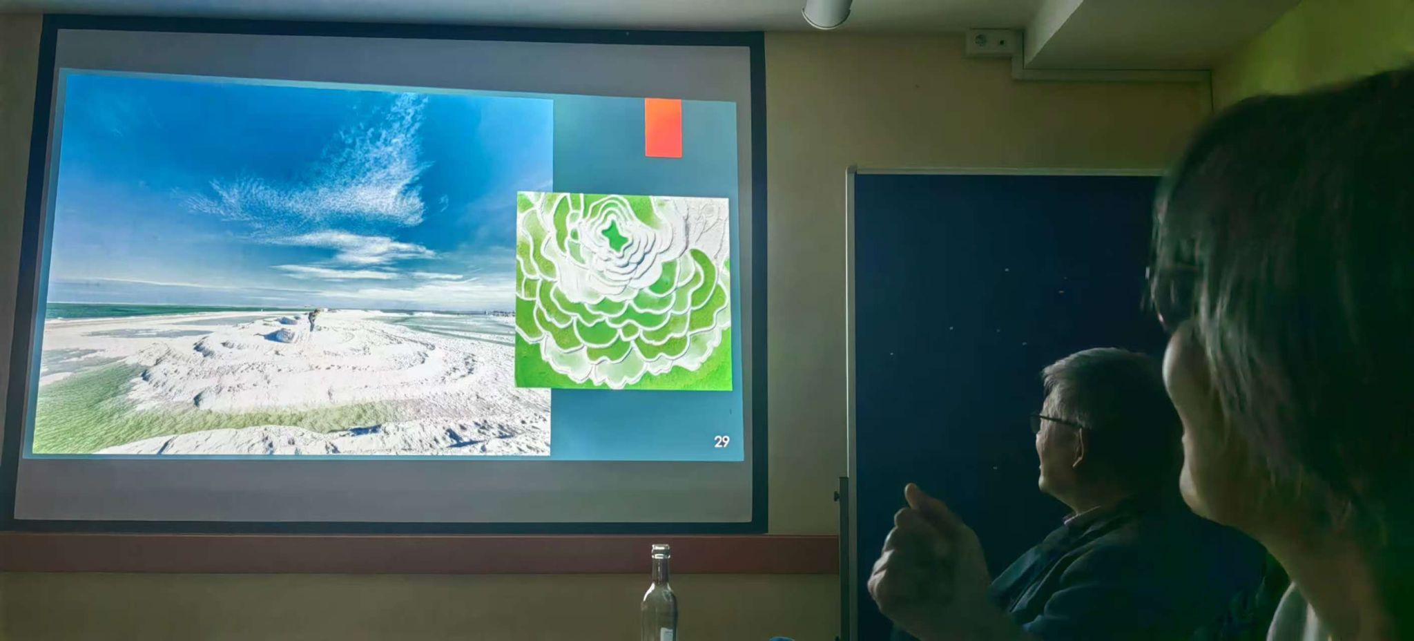 报告会开始后,严尉霞博士用一张青海地图,带大家走进了中国西部的广阔天地,感受高原的壮丽风光。她分享了自己拍摄的照片,展现了中国最大盐湖的广阔、茶卡盐湖如“天空之镜”般的美景、察尔汗盐湖盐结晶带的奇特自然景观,以及水上雅丹地貌的神奇。接着,萨尔德中友协会长、特里尔孔子学院创始成员林榕山博士,以学者的严谨和旅行者的热情,带大家沿着丝绸之路的千年足迹进行了一场跨越时空的旅行,从西安城墙的光影到兰州黄河铁桥的德式结构,从敦煌壁画的飞天图案到汉长城遗址的残垣断壁,每个文化地标都被赋予了丰富的解读。观众对汉长城遗址的徒步路线深感兴趣,显示出他们对深入体验中华文化的渴望。