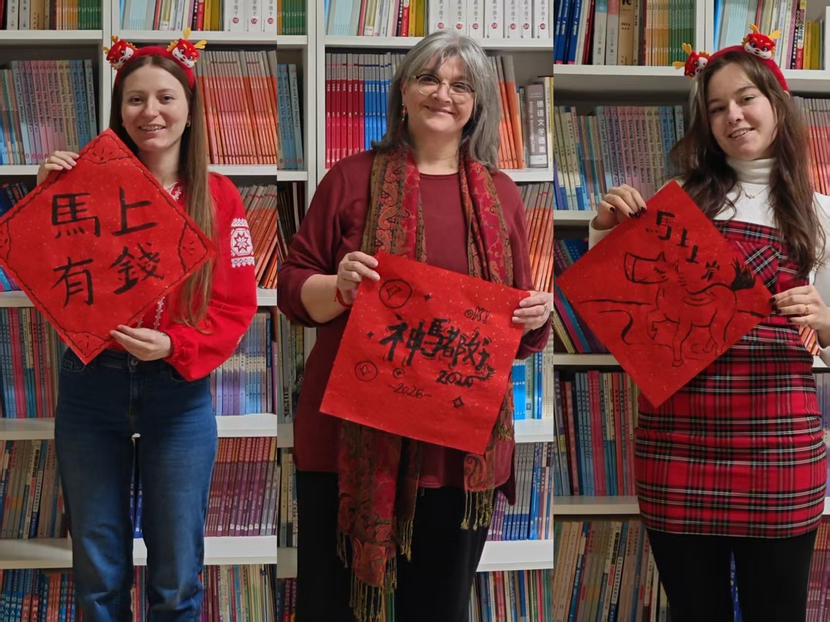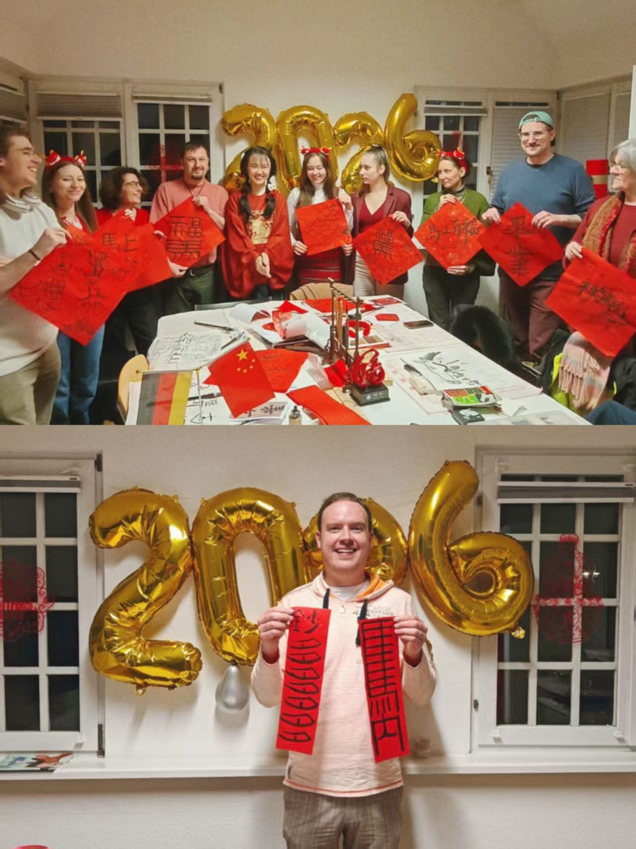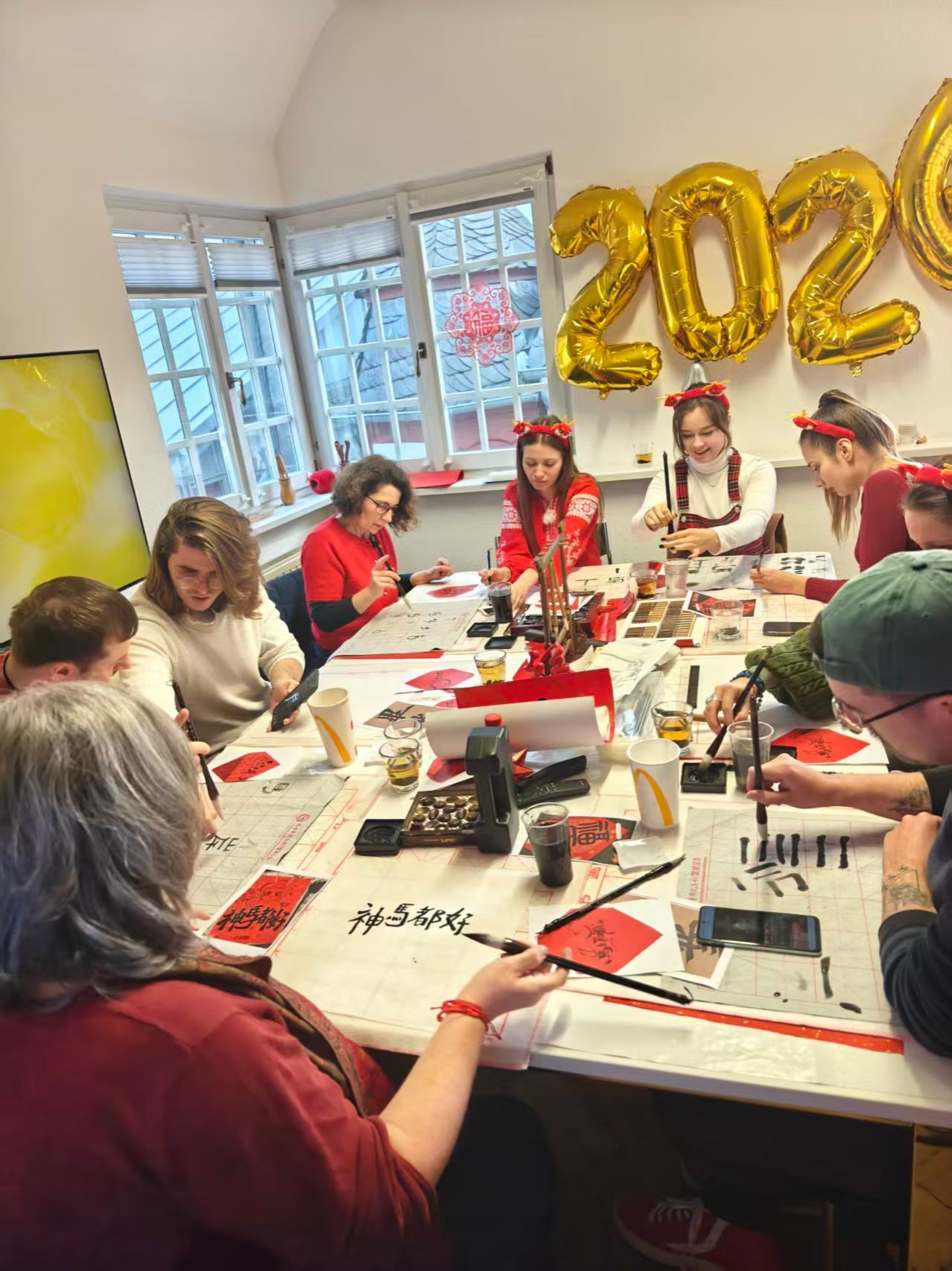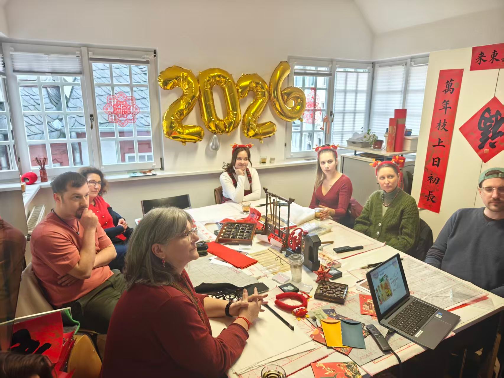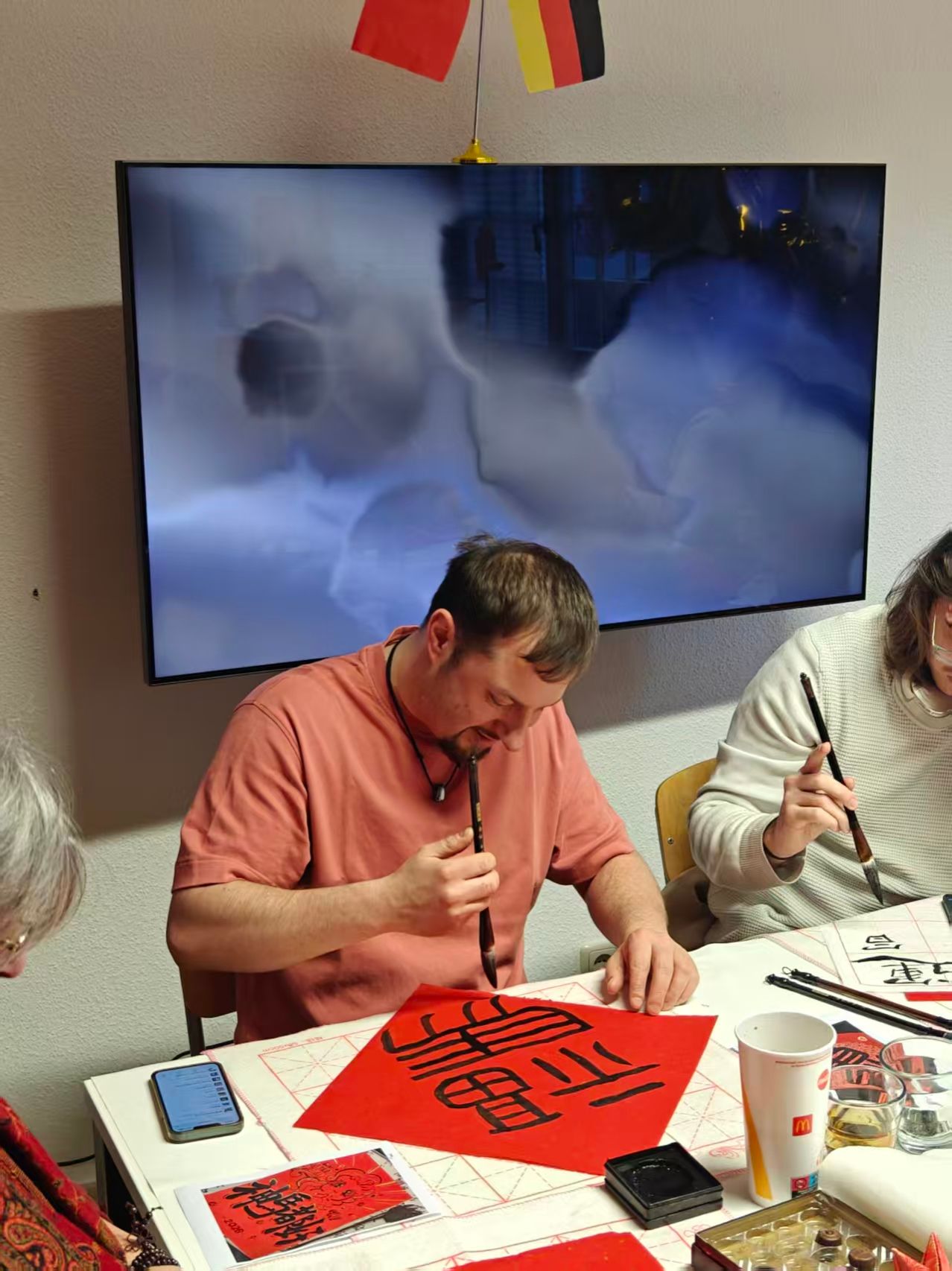 1月15日,德国特里尔孔子学院内红纸铺展、墨香浮动,“迎马年·书春意”春节文化体验活动在浓浓的年味中拉开帷幕。本次“翰墨迎春·共话生肖”主题活动由孔院公派教师郝熠璇策划主持,通过“溯源春节—生肖趣谈—笔墨书福—视频传情”四个环节,让德国学子在执笔挥毫与欢声笑语中,深度体验中国传统年俗的当代魅力。