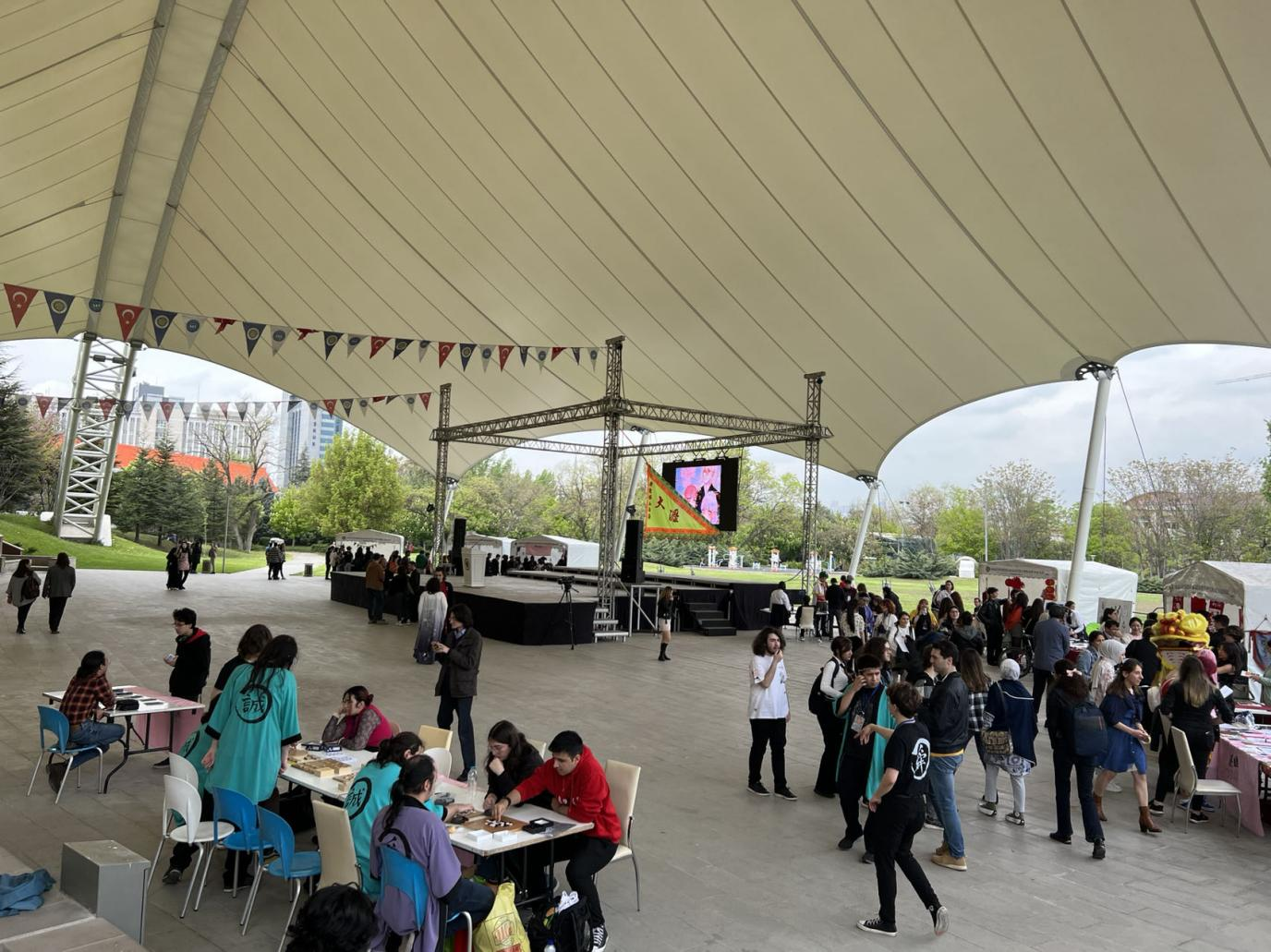 为了加强各国学生之间的友谊,进一步了解东亚国家和地区的语言、传统和文化,当地时间5月10日,安卡拉大学史地文学院和学生社团在该校校园里举办了“东亚国家文化活动日”。来自安卡拉大学的中文、日语等语言专业的学生以各种文艺表演和现场展览的形式介绍展现自己所学的东亚语言和文化,不同的学生文化社团还现场表演了舞蹈、话剧及太极拳表演。