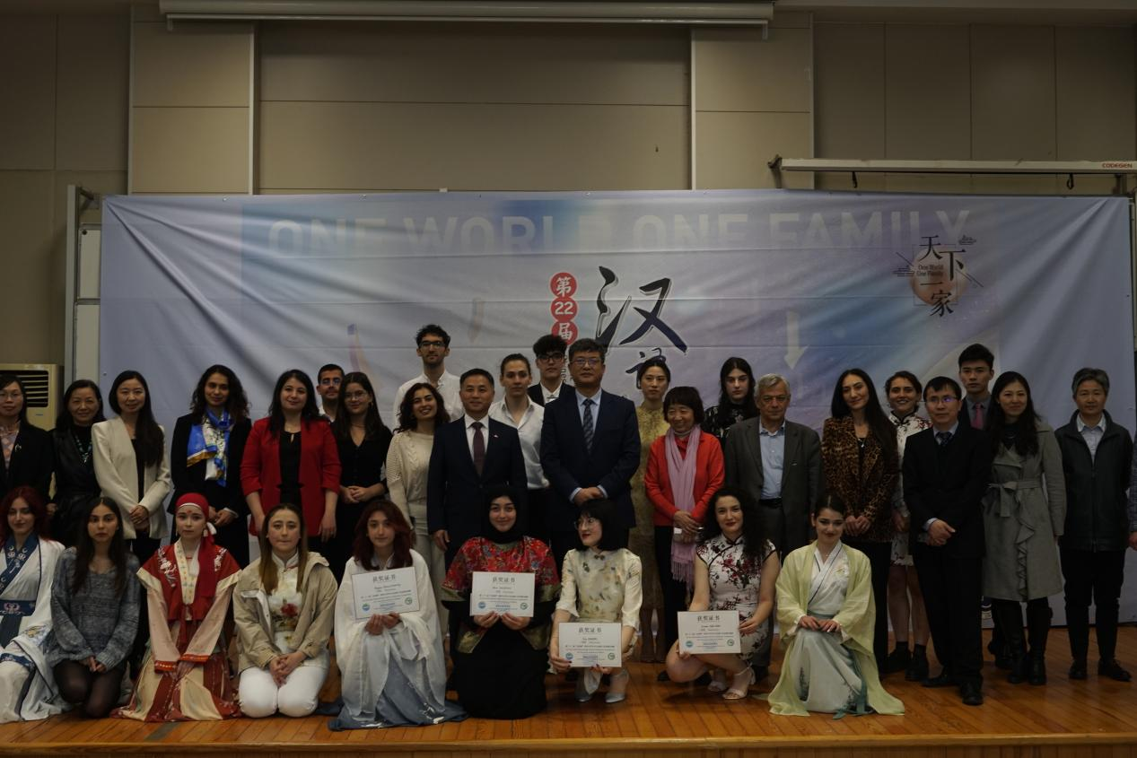 中国驻土耳其大使馆公使丛耸、中国驻伊斯坦布尔总领事馆代总领事吴健、副领事邓慧萍同中东技术大学孔子学院参赛师生合影留念
