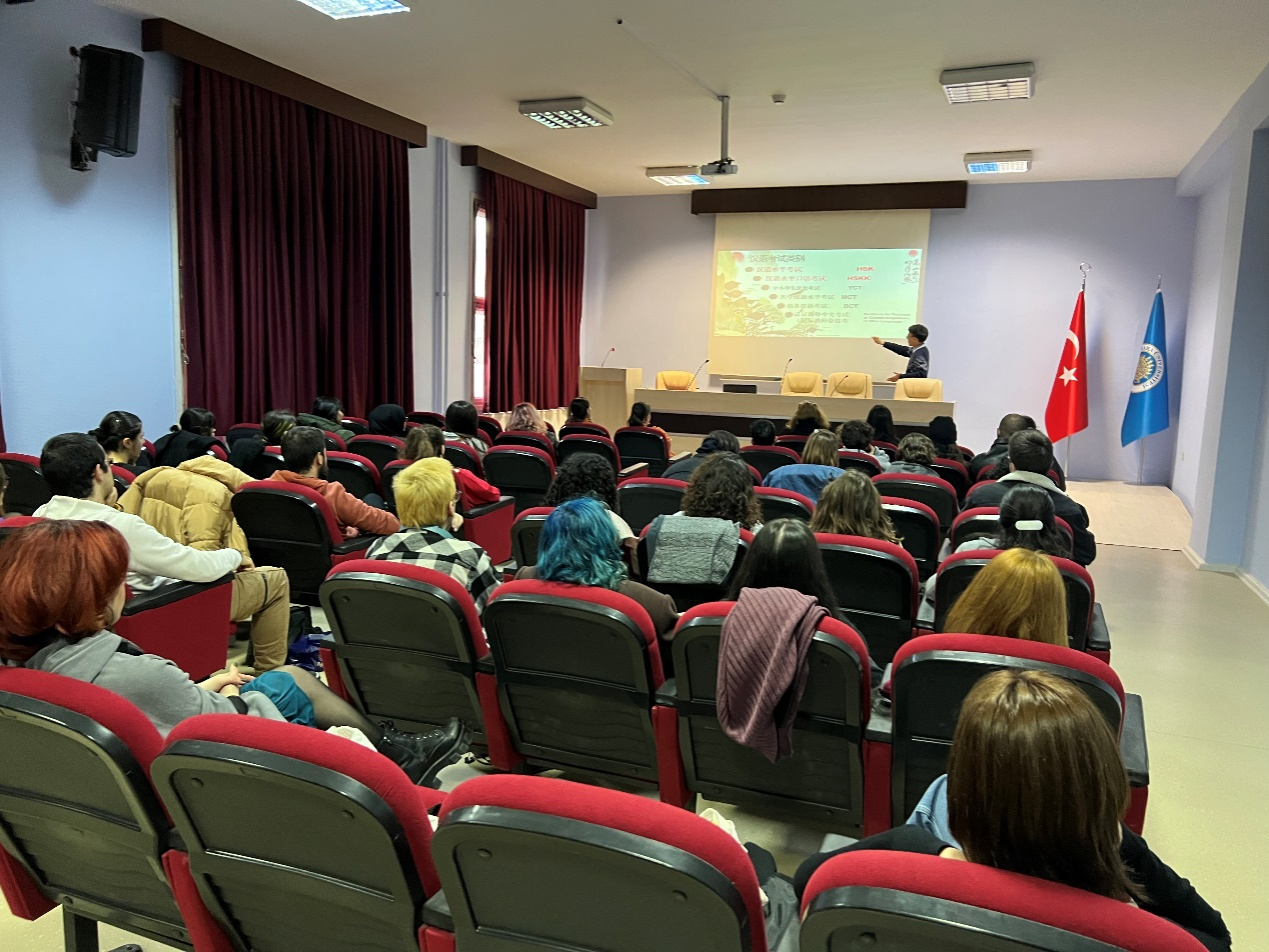 为加强和安卡拉大学中文系的交流与合作,当地时间2022年12月15日,土耳其中东技术大学孔子学院围绕“汉语水平考试和奖学金申请”这个主题在安卡拉大学史地文学院中文系进行宣讲,先在报告厅进行讲座,随后与现场学生进行互动交流。本次宣讲重点介绍了汉语水平考试HSK、汉语水平口语考试HSKK、商务汉语考试BCT等考试,以及中国政府奖学金、语合中心相关奖学金等项目,吸引了30余名安卡拉大学中文系的学生到场聆听。本次宣讲由安卡拉大学中文系Reyhan Eraslan教授主持,中东技术大学孔子学院志愿者宋峥杨主讲,孔子学院中方院长吴天喜现场解答有关奖学金申请和赴中国留学等一些学生关注的问题。
