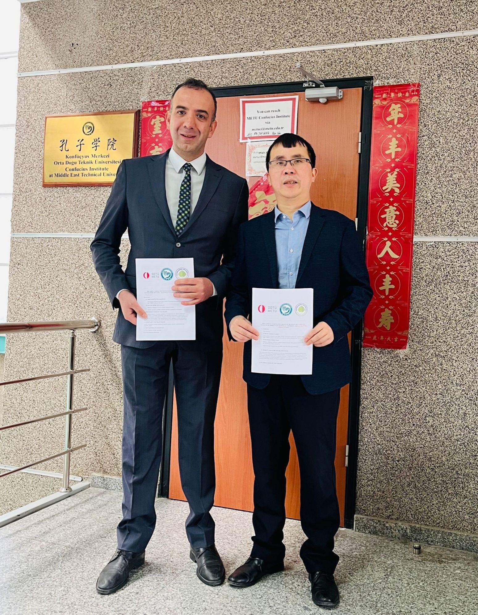 中东技术大学孔子学院中方院长吴天喜与Köksal Arslan校长举行座谈,介绍孔子学院办学情况,并就中文教学和中国文化活动开展达成协议,签署共建校外孔子课堂合作协议书。