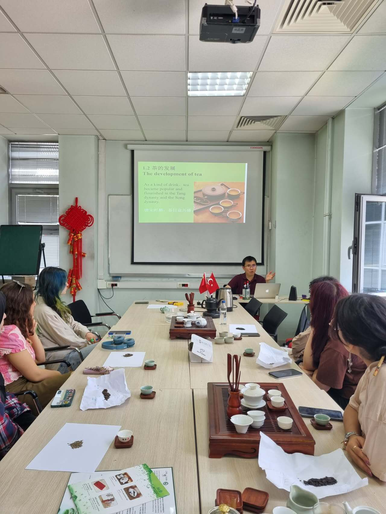 当地时间6月18日,中东技术大学孔子学院举办了端午节系列文化活动之一的茶文化讲座和茶艺体验活动,邀请安卡拉大学中文系计划申请“国际中文教师奖学金”的10位学生现场体验中华茶文化。