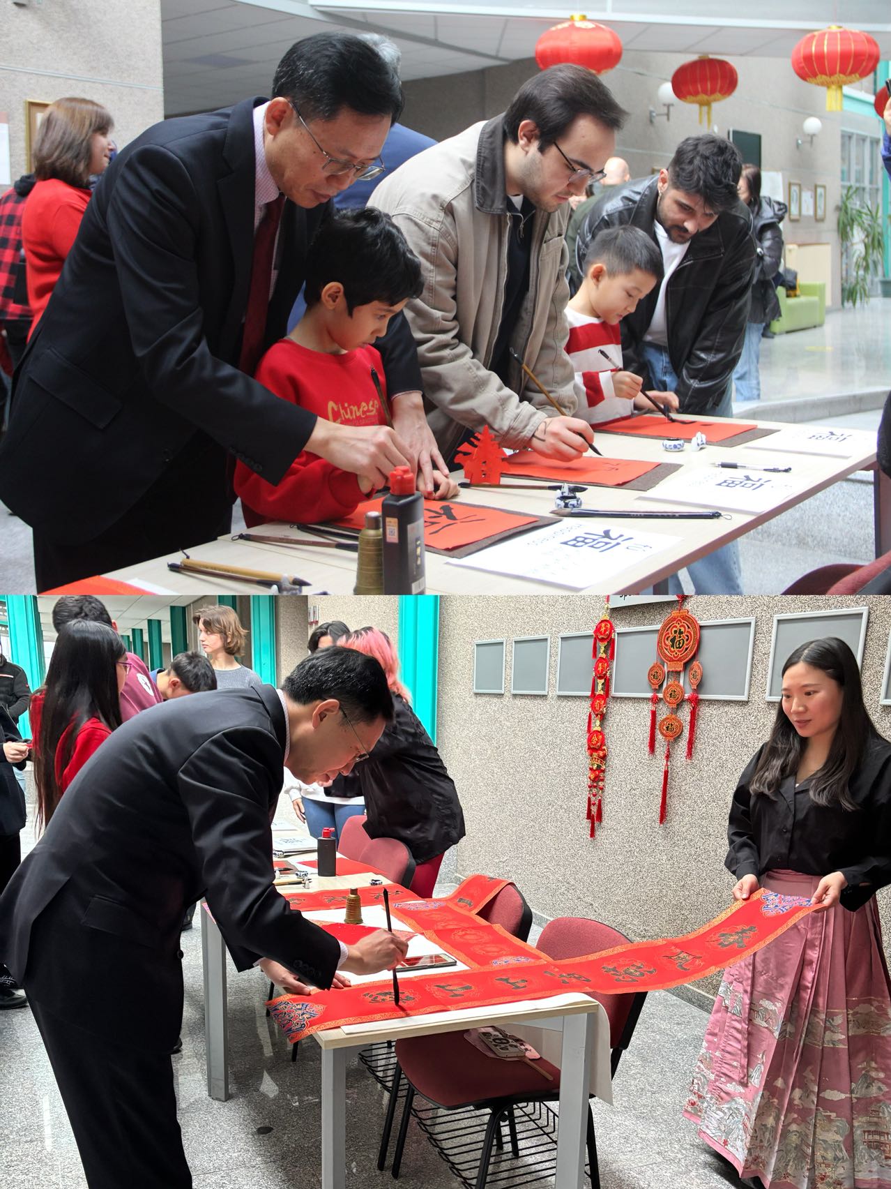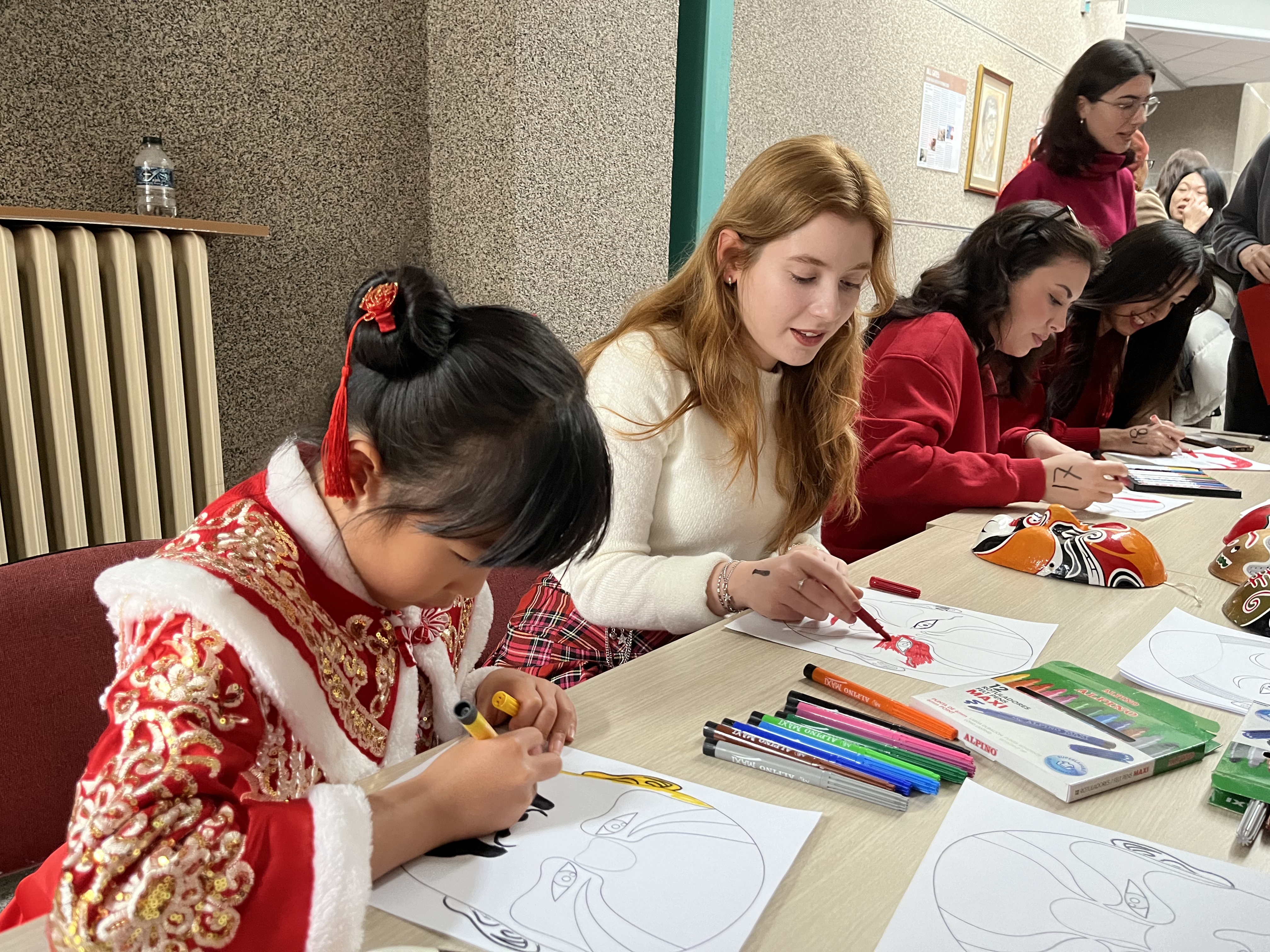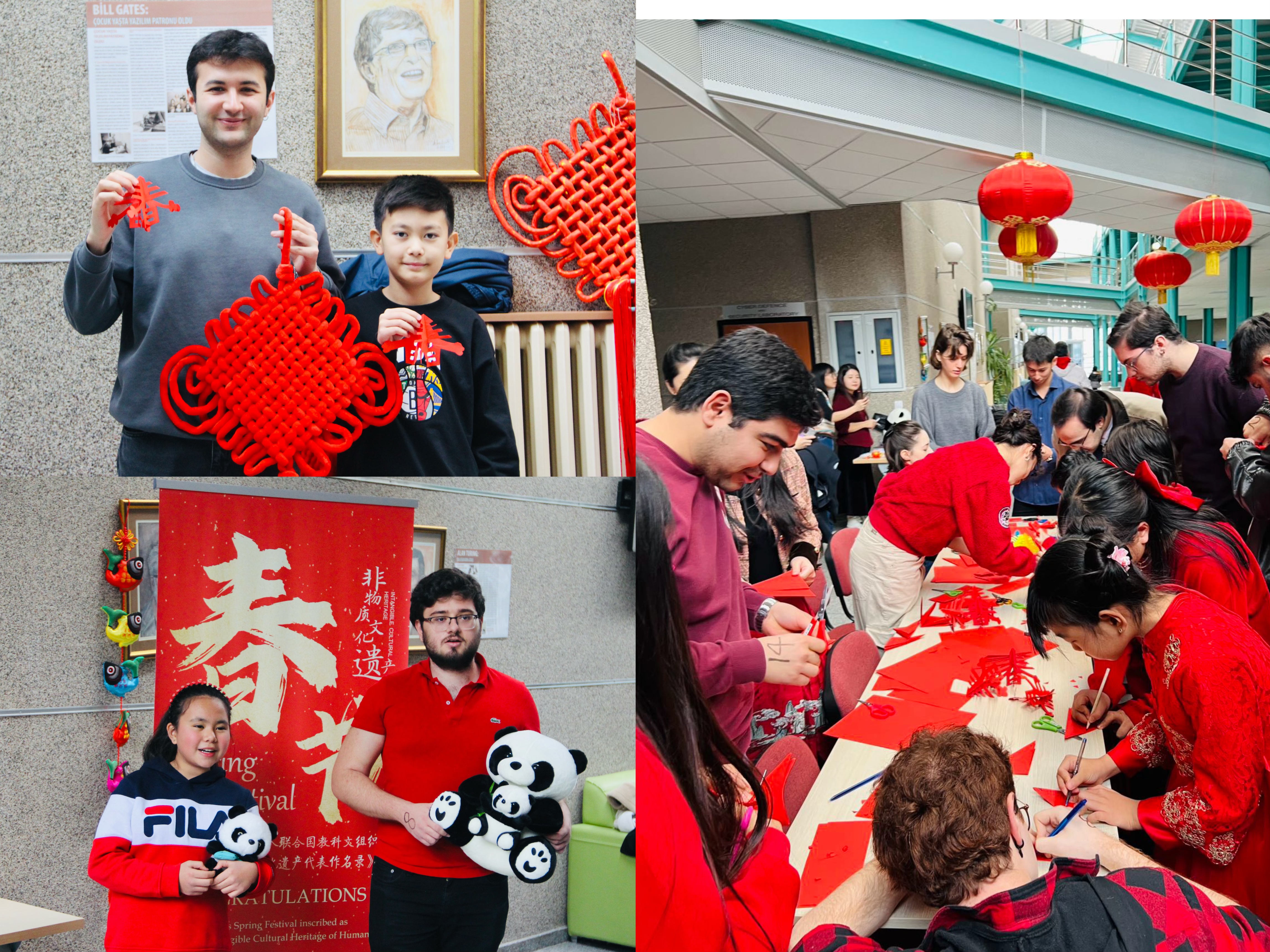 联谊活动内容丰富、形式多样,中土学生抽签结对为文化交流伙伴,共同参与文化体验环节。小组依次完成毛笔写“福”、剪纸“春”字、绘京剧脸谱、中文问答四项活动,现场欢声笑语不断,学生们在互动中感受到中国文化的魅力。完成后,学生凭打卡纸换取新年礼物,收获了满满的节日喜悦和祝福。此外,活动特设中国特色美食品尝环节,华裔家长们精心准备了多道中国传统美食,为学生们带来了一场舌尖上的文化盛宴,使他们进一步感受中国的节庆文化和家庭氛围。最后中东技术大学的学生带领华裔学生参观校园,既彰显了学校的学术环境与校园文化,又为双方学生创造了更多交流互动的机会。