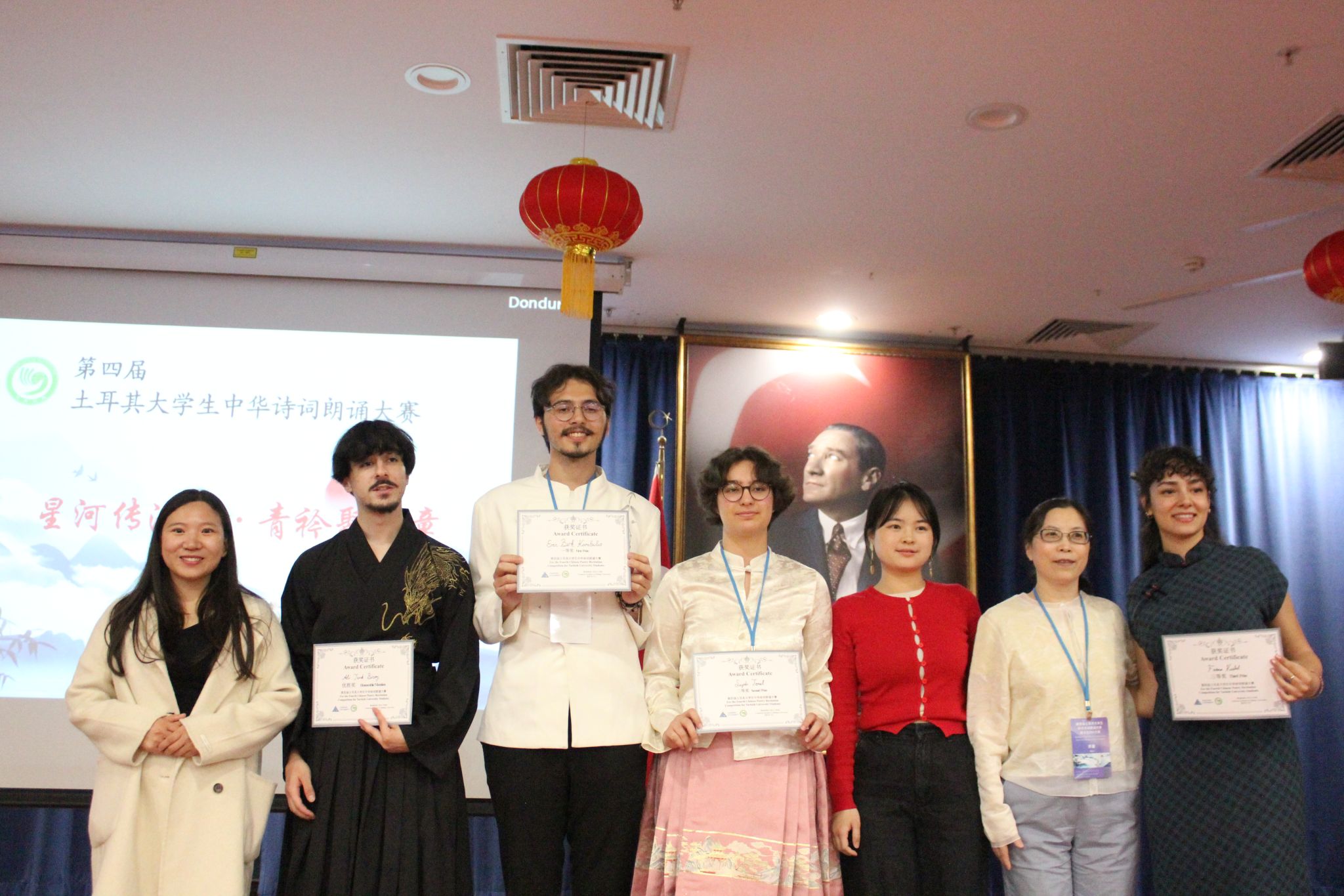 中东技术大学孔院中方院长王颖及汉语教师王康静、谢明明率八名学生参赛。各校参赛选手通过诗词朗诵和中文歌曲演唱等形式,充分展现了中文语言素养与中华文化理解力。在本次全国性中文赛事中,我院代表团全员斩获奖项,创下佳绩,充分展现了中东技术大学孔子学院中文学习的卓越成果与师生风采。