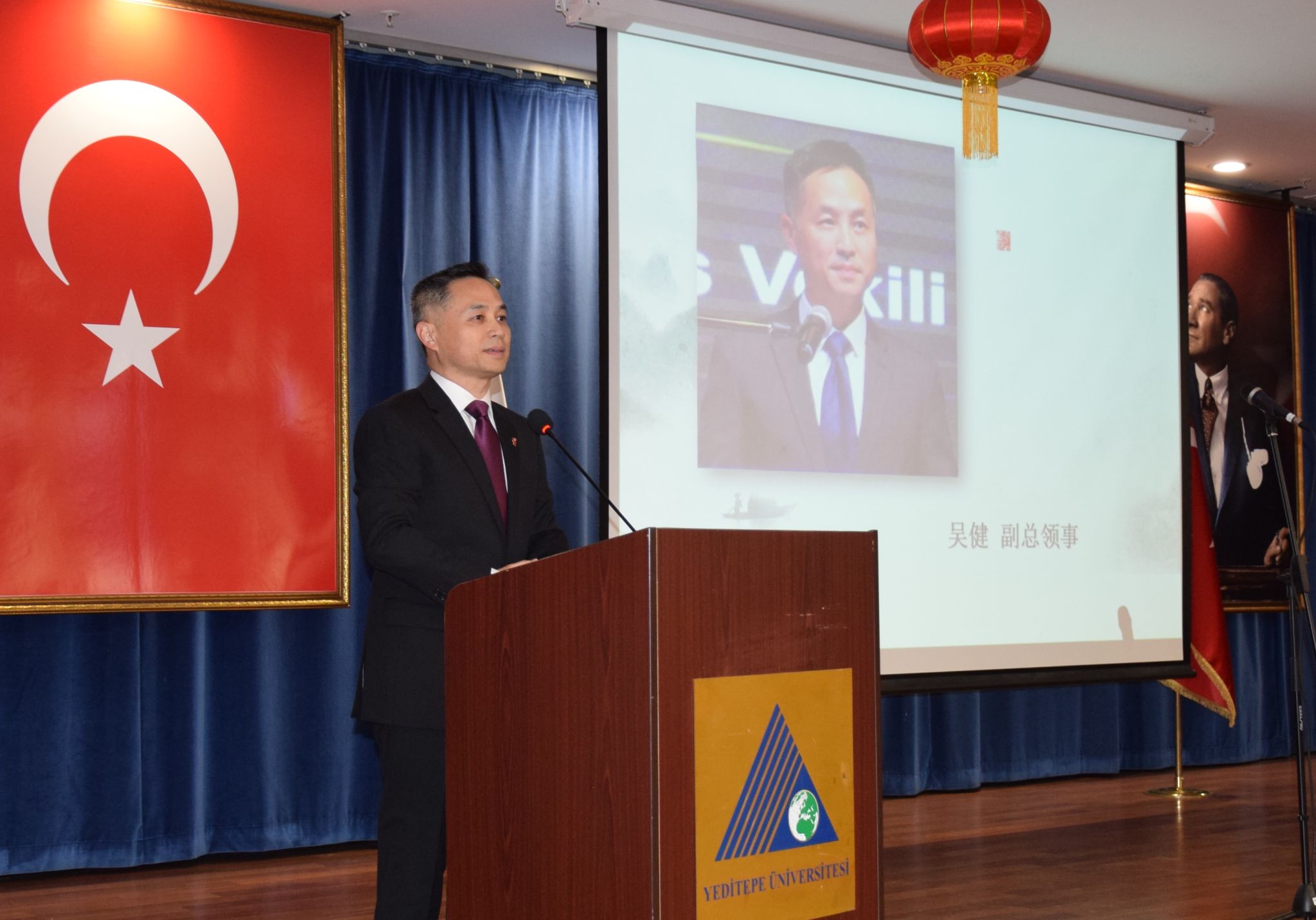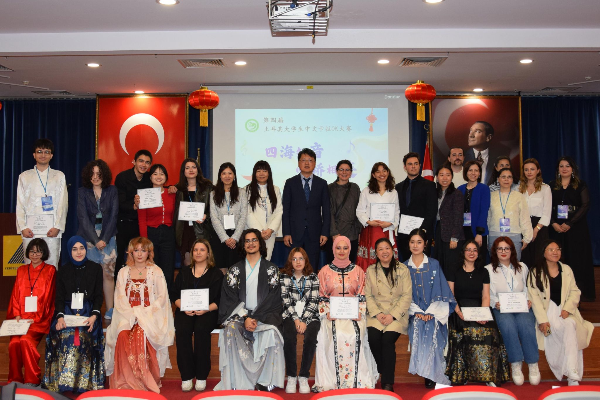 当地时间5月2日,第四届“土耳其大学生中华诗词朗诵大赛”暨第四届“土耳其大学生中文歌曲卡拉OK比赛”在伊斯坦布尔晔迪特派大学孔子学院举行,中国驻伊斯坦布尔总领事馆副总领事吴健出席活动。本届赛事吸引了来自土耳其六所高校的师生参与,包括晔迪特派大学、海峡大学、奥坎大学、内夫谢希尔大学、哈之巴以拉姆大学以及中东技术大学。
