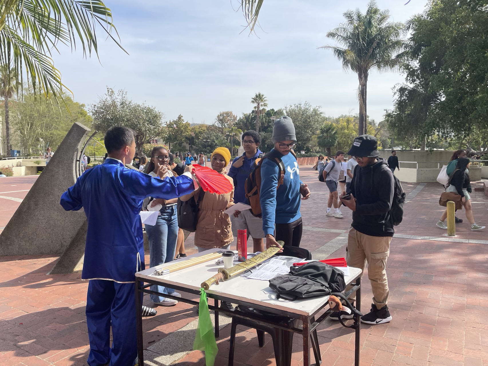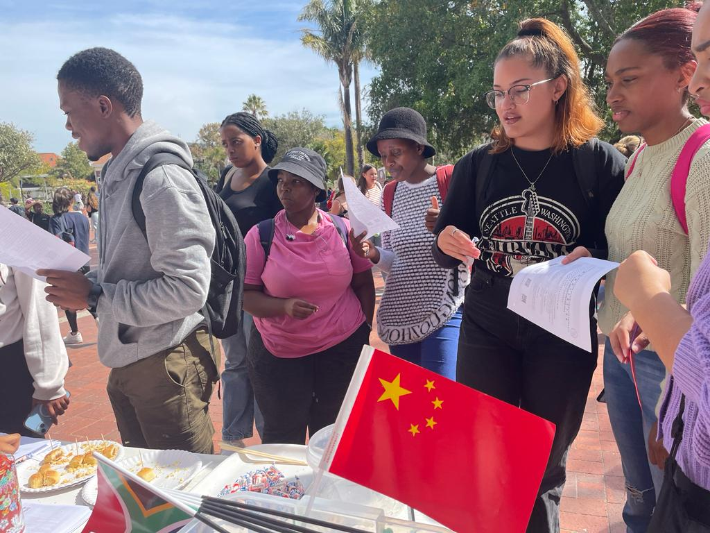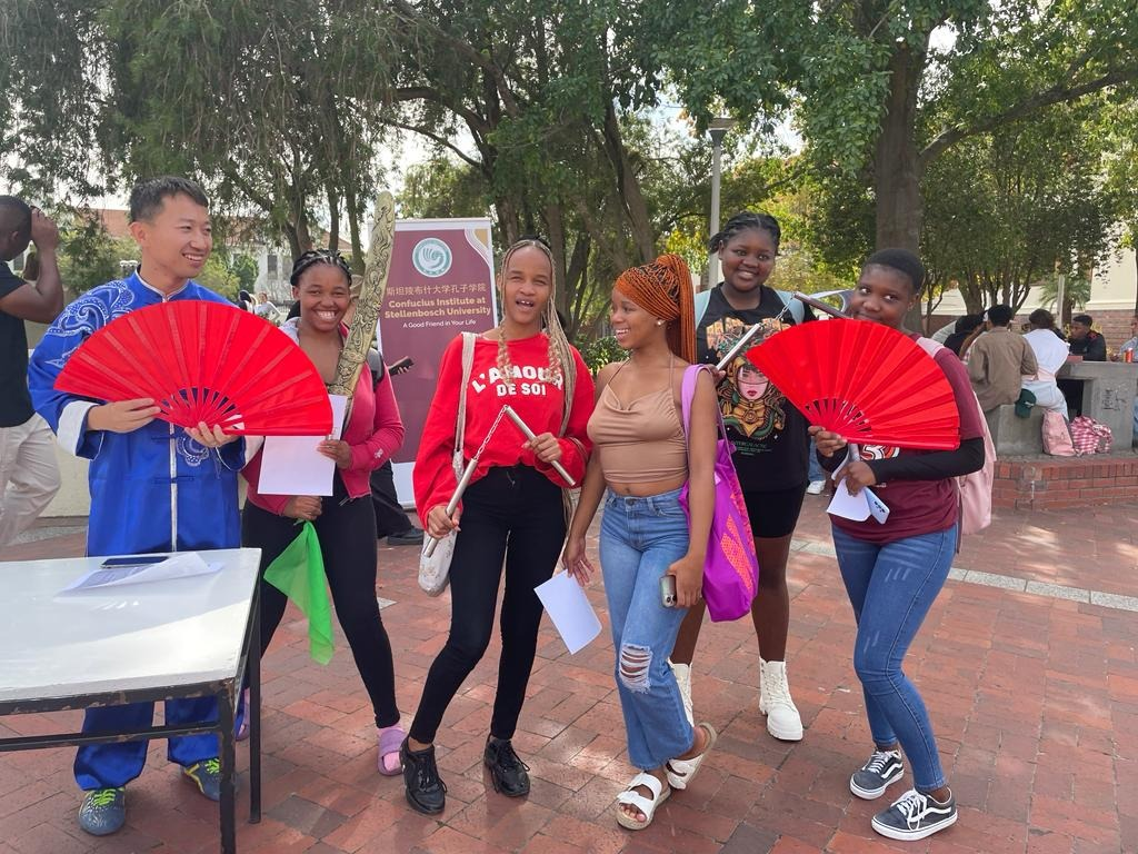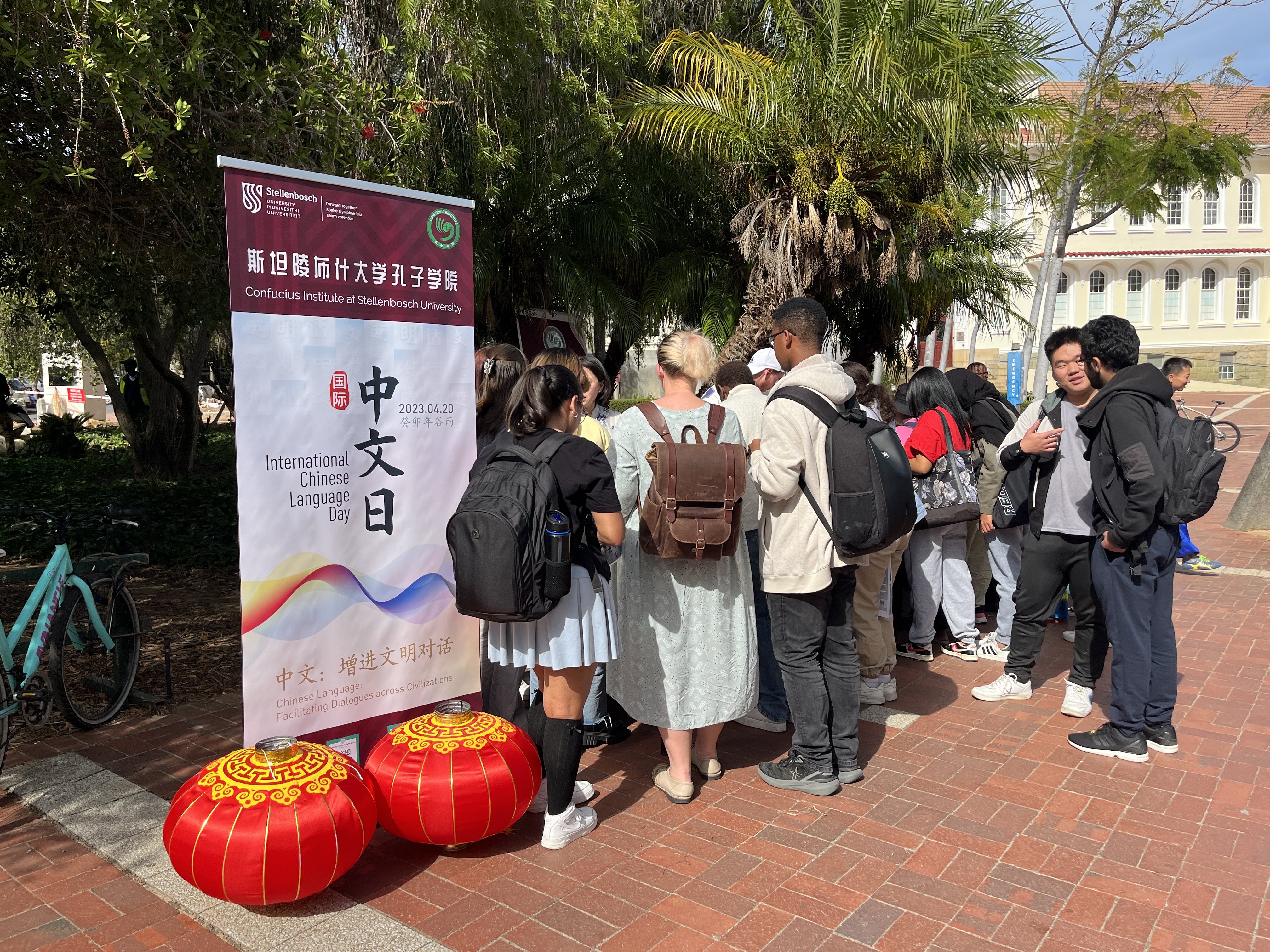 中华文明传千古,中文交流叩心扉。在中国传统节气“谷雨”及第14个“联合国中文日”到来之际,2023年4月20日,南非斯坦陵布什大学孔子学院 “国际中文日”中国文化体验活动在斯坦陵布什大学校园学生中心广场成功举行。活动共设四个摊位,包括中国书法、武术、中国结及中国小吃。各色中国文化瑰宝齐上阵,吸引了超过600名斯大师生参与体验,校园内洋溢着浓浓的中国文化氛围。