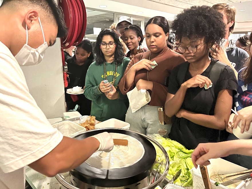 当地时间3月15日晚,受校方邀请,斯坦陵布什大学孔子学院参加了2023年校园国际美食节,让南非大学生品尝到了正宗的中国炒面和煎饼果子,在南非大学校园内掀起了一阵中国美食热浪。