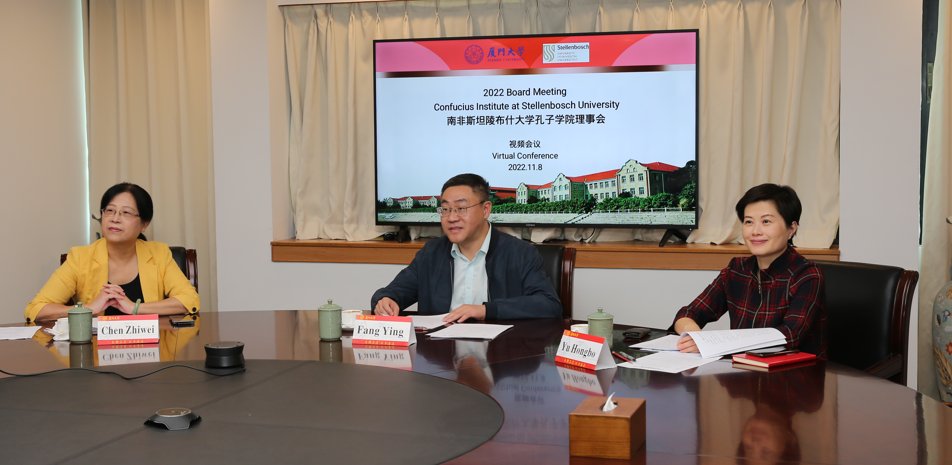线上召开的2022年斯大孔院理事会是孔院建院15周年庆典的系列活动之一,斯坦陵布什大学副校长海斯特·克洛珀教授、厦门大学校长助理方颖教授出席孔院理事会并致辞。出席理事会的还有厦门大学国际中文教育学院院长陈志伟,海外办学办执行主任、国际处副处长余宏波、中方院长黄斌兰教授、斯大国际处处长、孔院外方院长罗伯特·科茨、斯大国际处处长助理卡米恩·斯尼曼等。会议听取了孔院2022年度工作报告及2023年工作计划,并就推动学生交流、来华留学、申请英文硕博士项目,借助金砖国家合作平台及大学联盟平台,不断在创新创业等各领域深化合作,深入交换了意见。