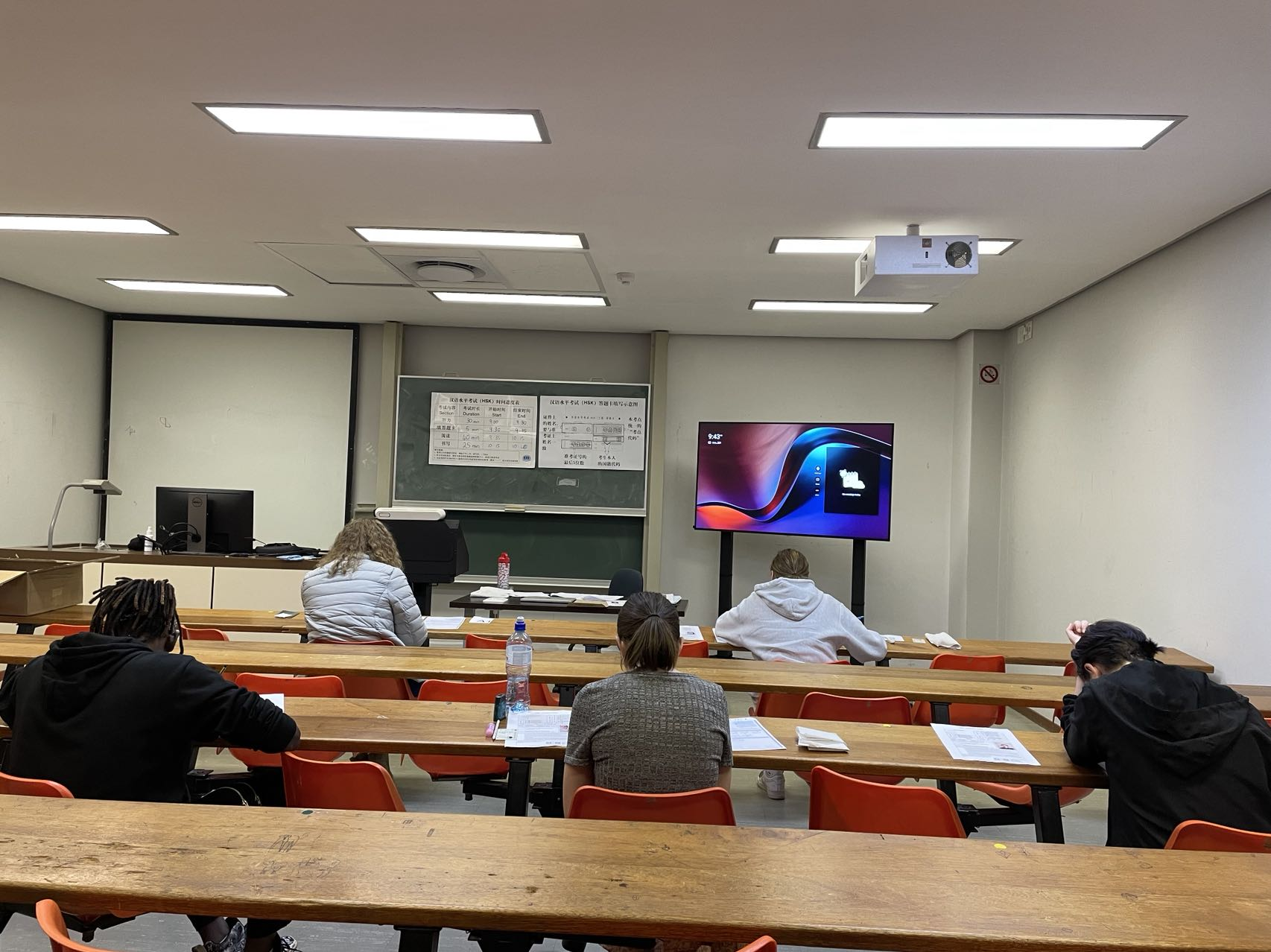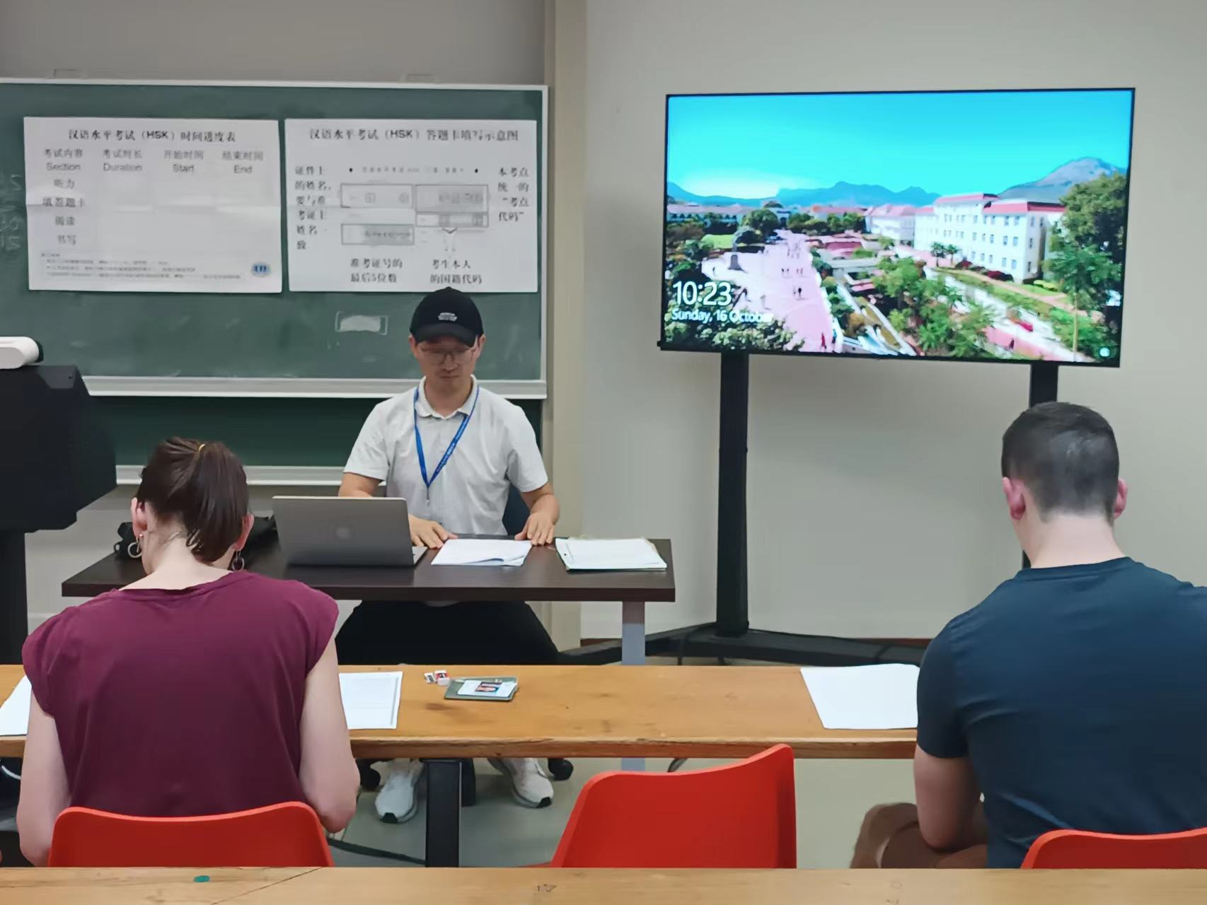 为确保HSK考试顺利进行,斯大孔院高度重视HSK考务工作,提前做了大量的宣传和准备工作。考试前召开两次HSK考务管理培训会和主监考前培训会,组织考务人员学习考试流程及相关规定,及时组织承担本次主监考的孔院老师参加主监考资格考试,提前为考试设备及考场的安排等做好做足准备工作。