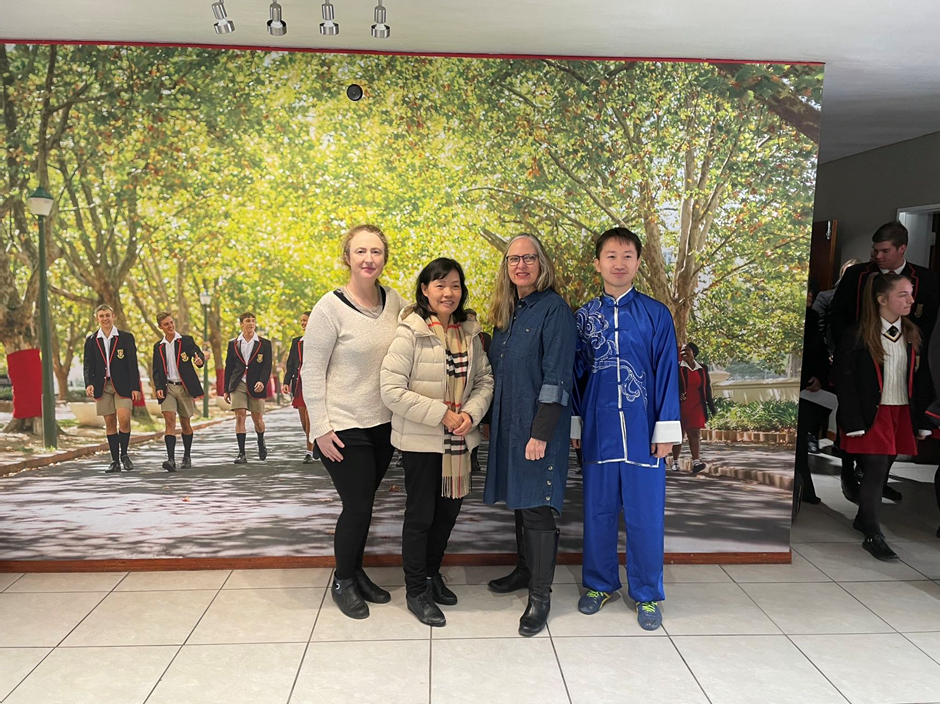 2022年8月、9月,南非斯坦陵布什大学孔子学院连续3次受邀,参加当地3所中小学在不同时间举办的全校师生晨会。利用参加晨会的机会,孔院中方院长黄斌兰教授、米卡拉老师和杨甲老师就孔院概况、孔院提供的汉语语言文化项目、中国节庆活动、汉语语言文化比赛及奖学金项目等,分别给三所学校的师生进行了宣讲推介,并开展了太极扇、长拳等项目武术体验活动。这3所学校包括孔子课堂所在的瑞腾布小学、卡里莫高中和斯坦陵布什高中,3000多名师生饶有兴趣地参加了推介活动和武术体验,现场气氛热烈,掌声和欢呼声不绝于耳。
