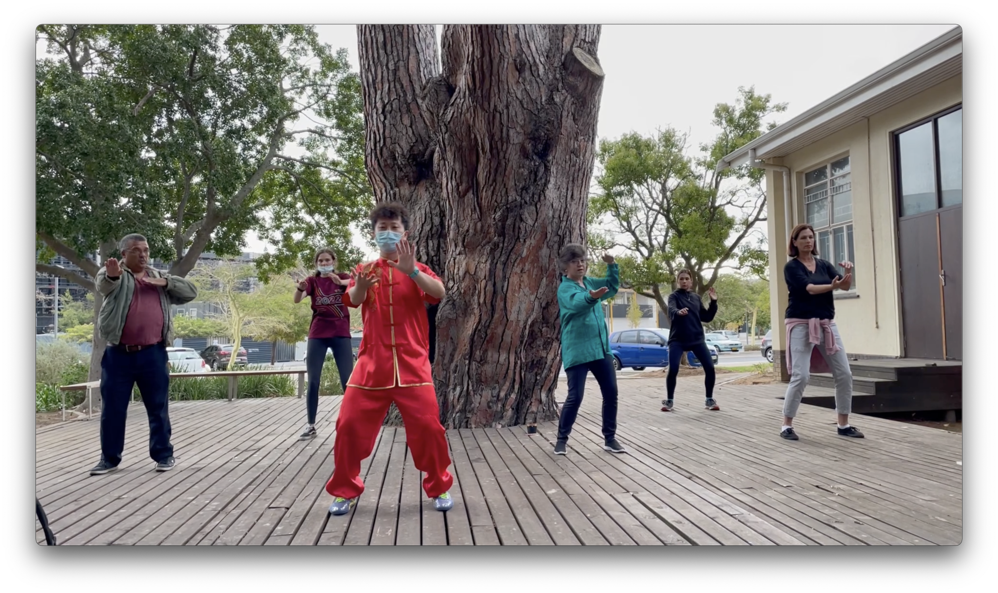 下图是孔子学院在斯坦陵布什大学本部举办的成人武术体验活动剪影,参加者有本地民众、大学教师和学生。