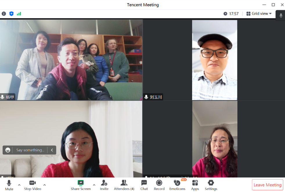 由于孔院师资短缺,戚影老师在线上长期负责斯大孔院的初、中、高级成人班汉语教学工作。因成人班学生通常在白天的工作或学习后才有时间参加汉语课,国内与南非还存在6小时的时差,戚影每个工作日都在国内的深夜11点至12点为南非学生上网课。交流会上,戚影详细介绍了各个班级的学生情况与教学进度,倾情分享了自己在成人班进行线上教学的宝贵经验,大家深受启发,获益匪浅。