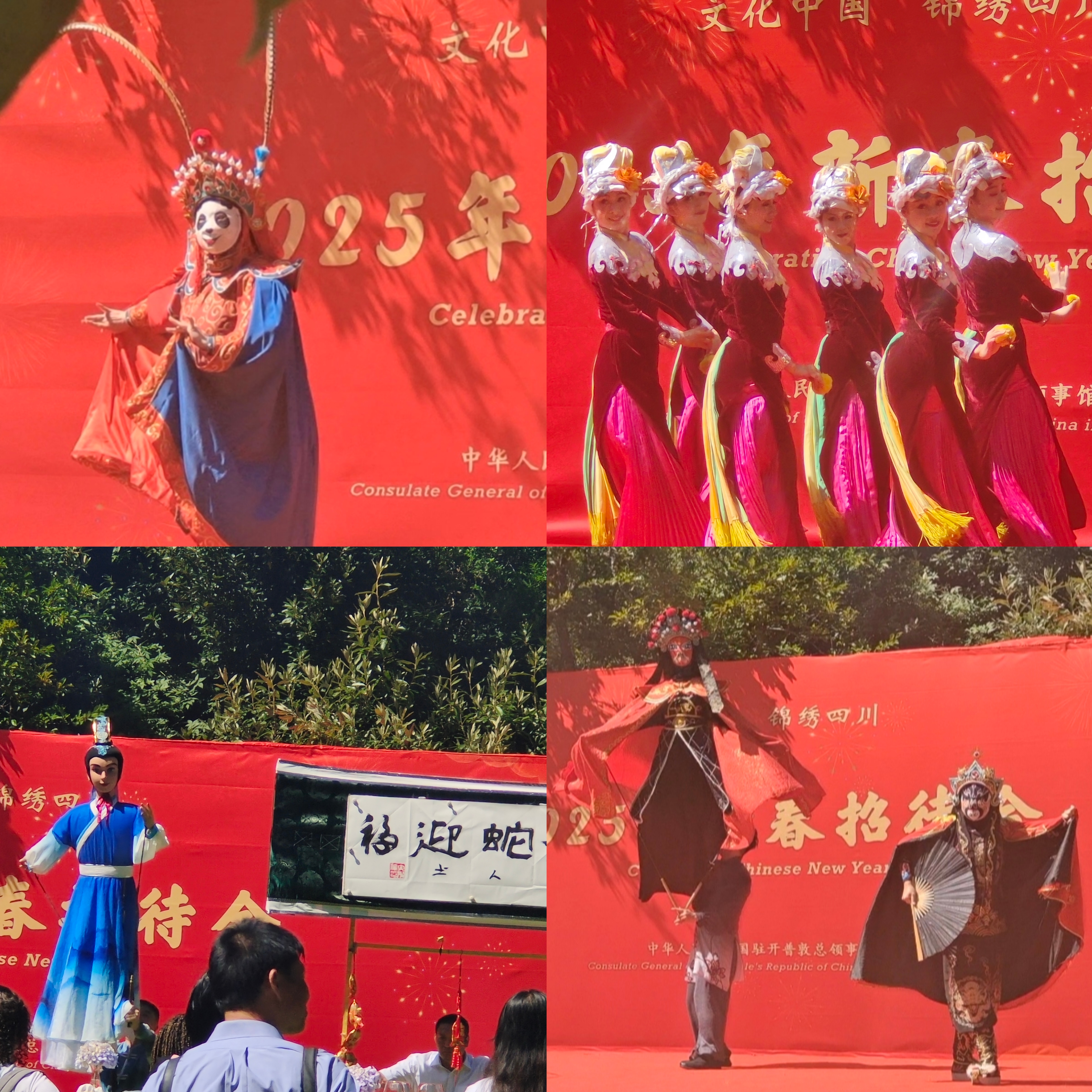 巴蜀风韵,华彩满堂。招待会现场气氛热烈,以“锦绣四川”为特色的文艺节目精彩纷呈。大熊猫、中国结、红灯笼等点缀其间,中国茶、饺子、烤串、甜点等各类传统美食贯穿全场。羌族舞蹈、川剧变脸、藏族民歌、木偶戏等精彩节目交相辉映。艺术家们高超的技艺和中国文化的独特魅力深深吸引了观众,掌声和喝彩声此起彼伏,现场气氛热烈欢腾,充满喜悦。