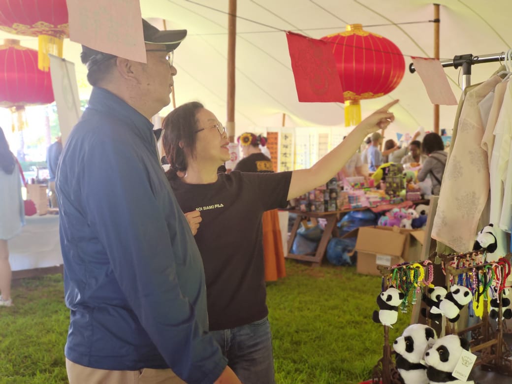 庙会现场热闹非凡,处处洋溢着浓厚的节日氛围。书法、茶艺、传统服饰、结绳、拓印等中华文化体验展台前人头攒动;游客们在饺子、包子、冰粉、肠粉、肉夹馍等中国美食摊位前大排长龙。公园中央,太极、舞龙舞狮等精彩表演轮番上演,赢得观众阵阵掌声,将节日氛围推向高潮。