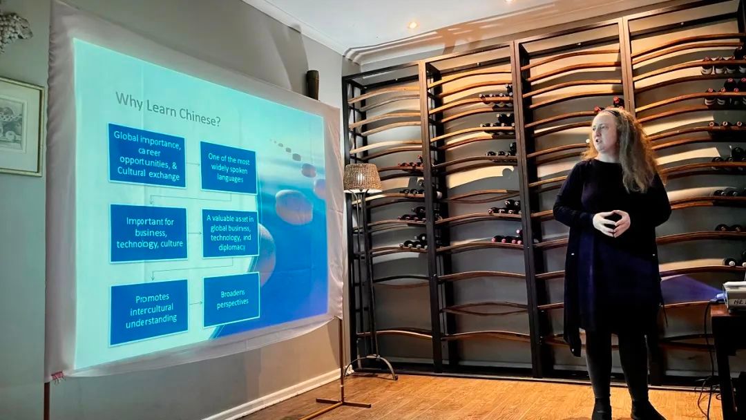 会议伊始,斯坦陵布什大学孔子学院院长郑若娟教授简要介绍了斯坦陵布什大学孔子学院的发展现状以及本次会议的意义。本土教师米凯拉(Mikaela Keen)就斯坦陵布什孔院本学期的教学情况进行了全面的汇报。她介绍了孔院的师资力量与组织架构,详细阐述了孔院可为各个中小学提供的服务,如中文教学、文化活动、HSK考试等,并以各中小学选手参加“汉语桥”比赛为例生动展示了中文学习的重要意义,同时也坦诚指出教学过程中遇到的问题与挑战,如学生数量不稳定、教学时间不合适等。