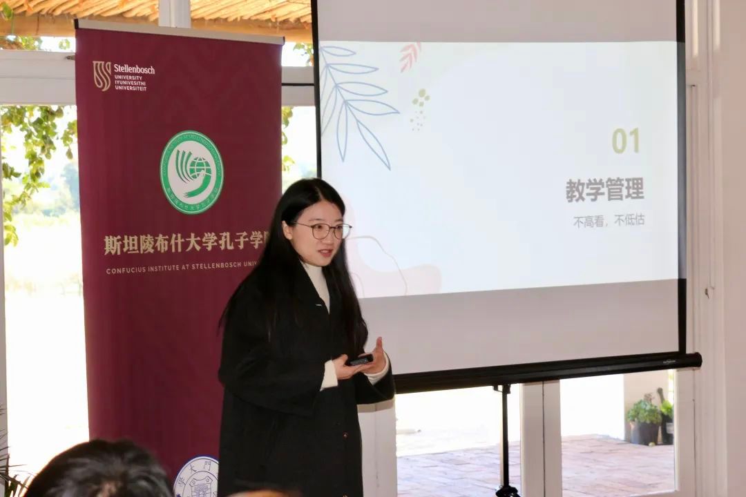 在文化活动组织经验分享环节,斯坦陵布什大学孔院张怡老师以书法和茶艺文化活动为例,探讨了如何提升文化活动的吸引性、趣味性和深度性,尤其强调如何通过文化活动的各个环节纠正文化误区、正本清源。开普敦大学孔院杨冰钰老师分享了中文歌曲大赛的组织和策划经验。西开普大学中医孔院陈连香老师则讲述了学生因学习中文歌曲而改变人生轨迹的故事,展现了中文教学对个人成长的深远影响。
