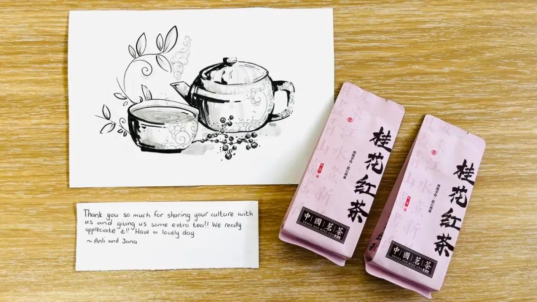 讲座结束后,参与此次讲座的学生安莉·奥伯霍尔泽(Anli Oberholzer)主动向孔院表示感谢,并亲手赠送了一幅以中国茶为主题的手绘作品和一封手写感谢信,表达她对中国茶道的喜爱与敬意。该课程负责人马连卡·克里格(Marenka Krige)老师也对本次讲座给予高度评价:“这是一次极富教育意义的文化交流活动,学生不仅学到了实用的知识,更拓宽了国际视野!”