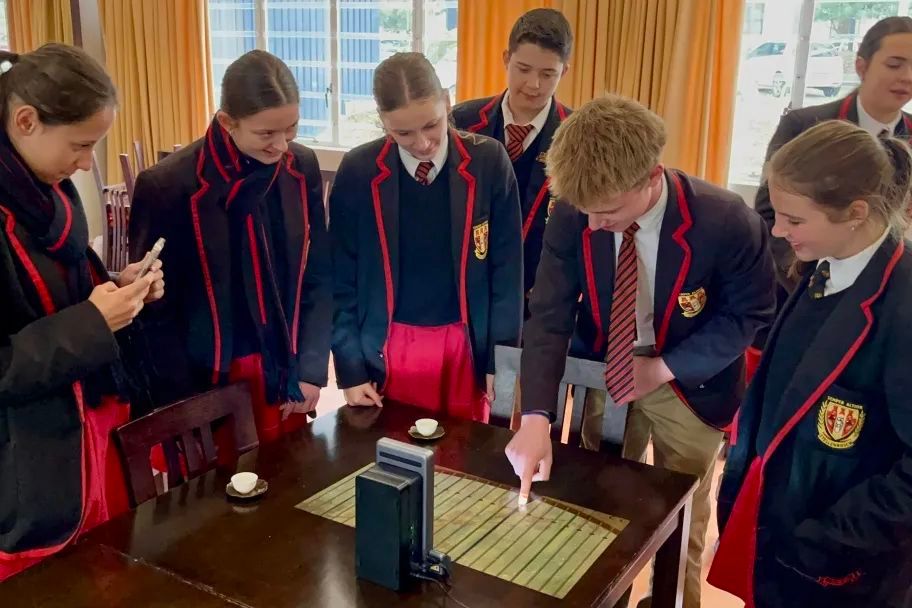 最后,斯坦陵布什中学师生还体验了来自中国的高科技产品——触控投影仪,在桌面上无实物弹奏古筝,体验中国传统文化与现代科技的创新式融合。