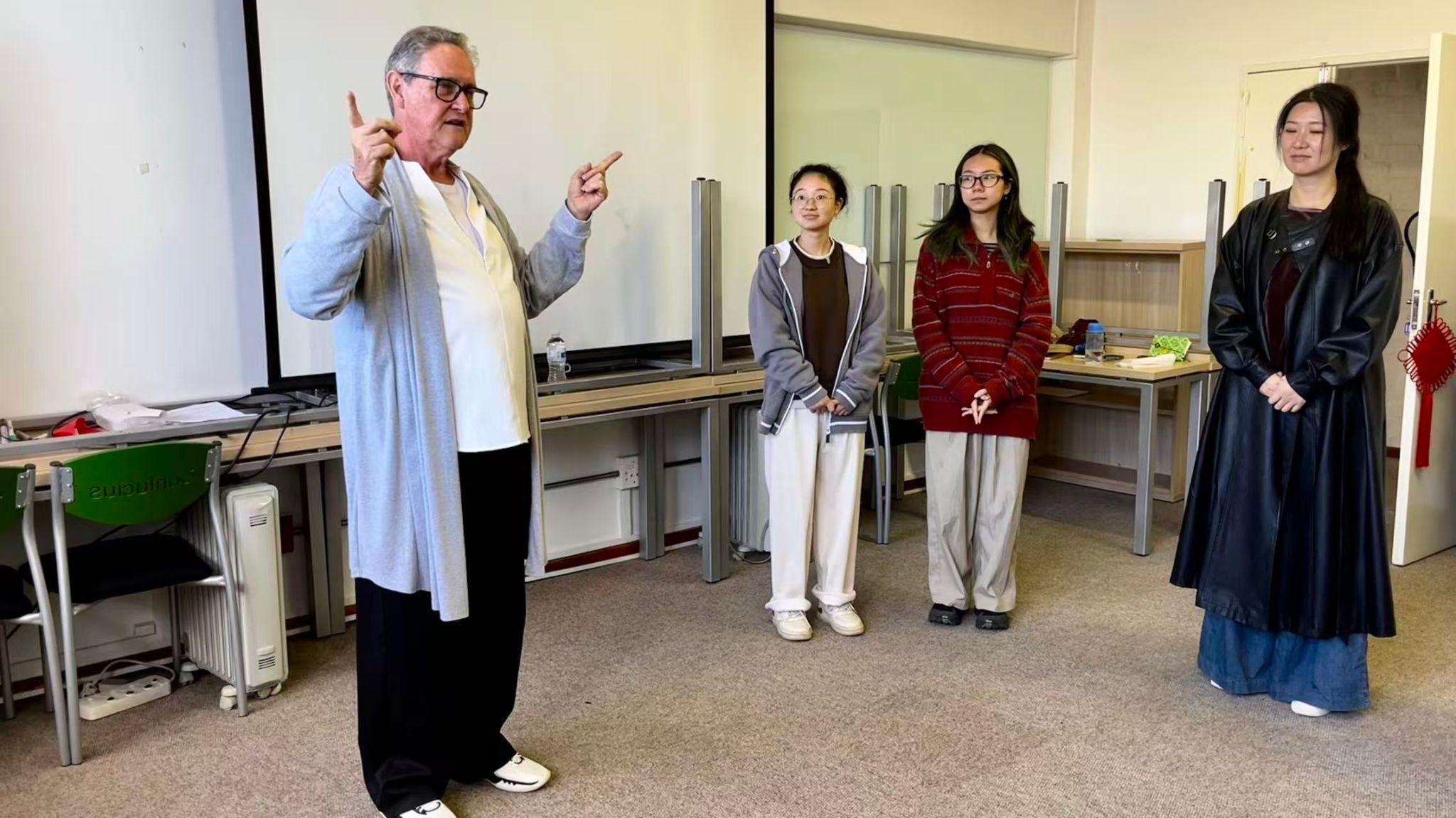 培训采用互动式教学模式,学员分组进行场景表演、与即兴对话训练,课堂氛围热烈。反复的练习中,学员们不仅提升了发音准确度和口语流利度,更加深了对“声音即表达”的理解。斯大孔院中方院长郑若娟教授表示,这种通过戏剧学习语言的方式极具启发性,能有效帮助老师们在今后的中文教学与跨文化活动中更富有激情、更自信地使用英语。