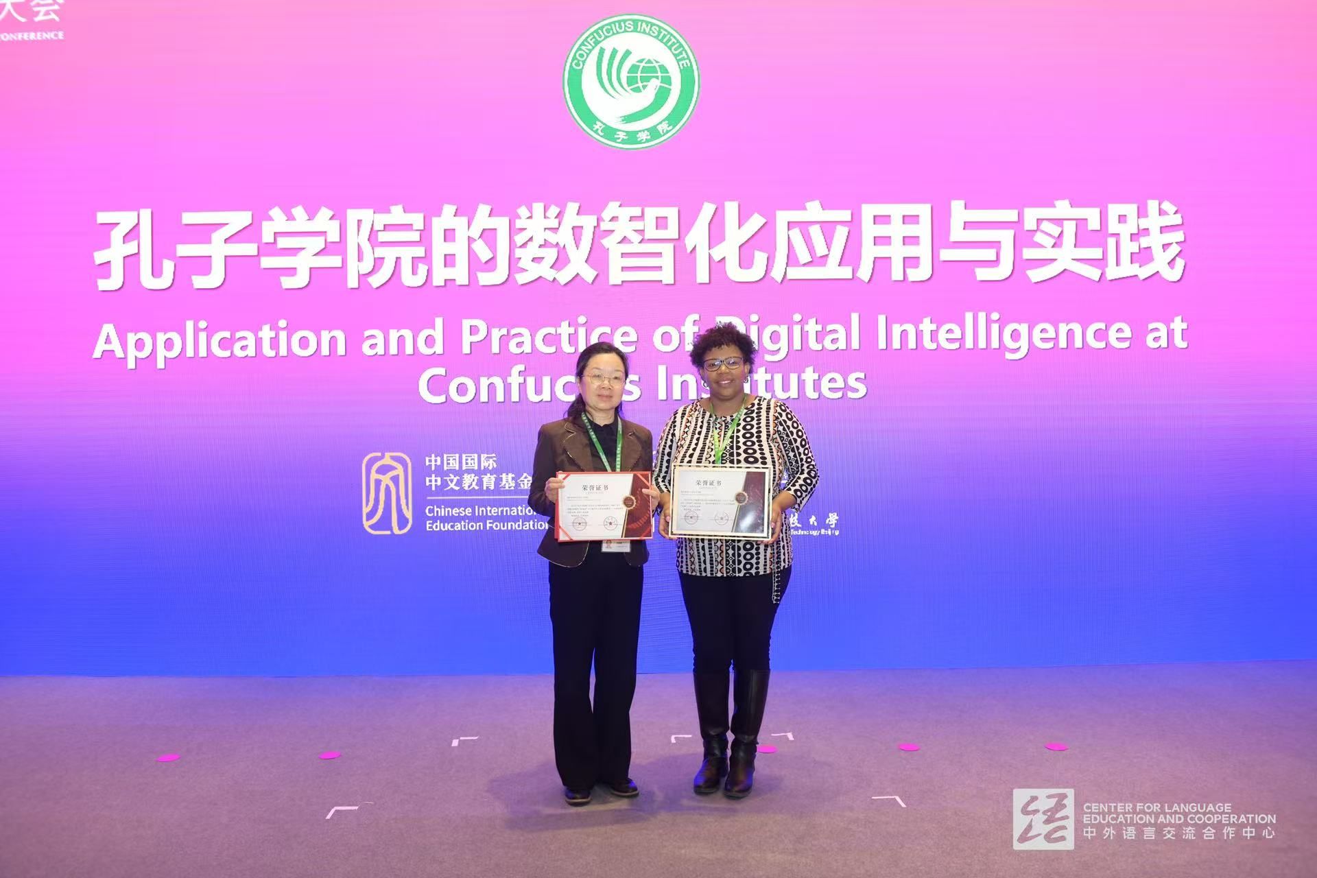 在颁奖现场,南非斯坦陵布什大学孔子学院中方院长郑若娟教授、南非斯坦陵布什大学国际处副处长卡门·斯奈曼(Mrs. Carmien Snyman)代表斯大孔院登台接受表彰。本次活动由中国国际中文教育基金会与北京科技大学联合发起,旨在展示全球孔子学院数字赋能教学、文化交流与管理实践的最新成果。案例根据“智促教学、智汇文明、智优管理”三大方向进行评选,突出案例将纳入《2025孔子学院数字化应用与实践案例集锦》并在全球范围内推广。此次获奖不仅是对斯大孔院探索数智化道路的鼓励,更体现了数字工具在国际中文教育中“创新创造价值、智能引领未来”的发展趋势。