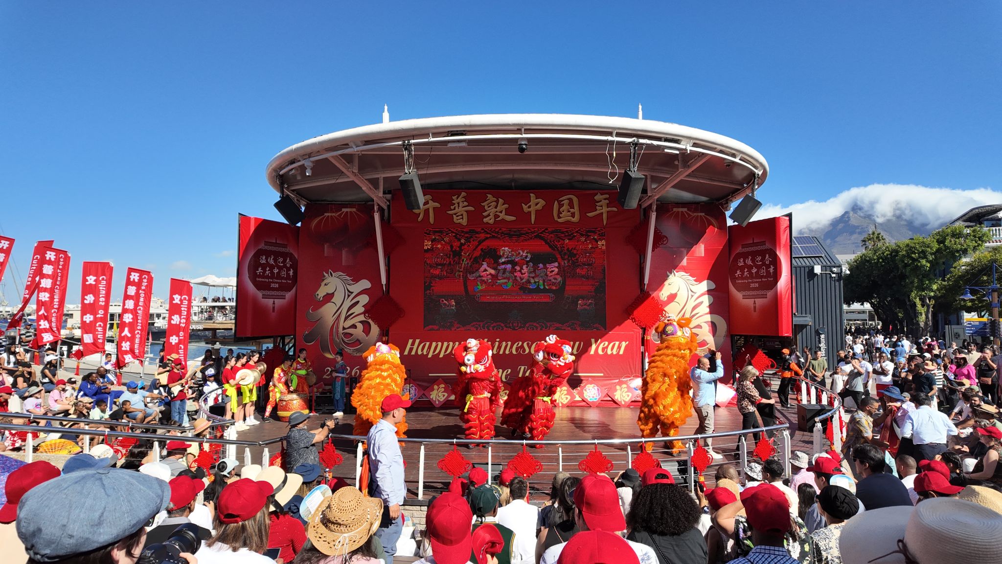 在2026年“中非人文交流年”背景下,中非人文交流持续走深走实。当地时间2月1日,“开普敦中国年”庆祝活动在南非开普敦著名地标维多利亚与阿尔弗雷德滨海区隆重举行,本次春节活动由开普敦华星艺术团联合当地多个华人社团共同主办,包含逛集市、品中国美食、体验中国传统文化与节目演出,吸引了数万计当地民众和国际游客热情参与。南非斯坦陵布什大学孔子学院带来的汉服体验、茶艺、猜甲骨文、编手绳、五子棋等活动,为中国年庆典增添了浓厚而生动的文化色彩,受到参与者的广泛欢迎。
