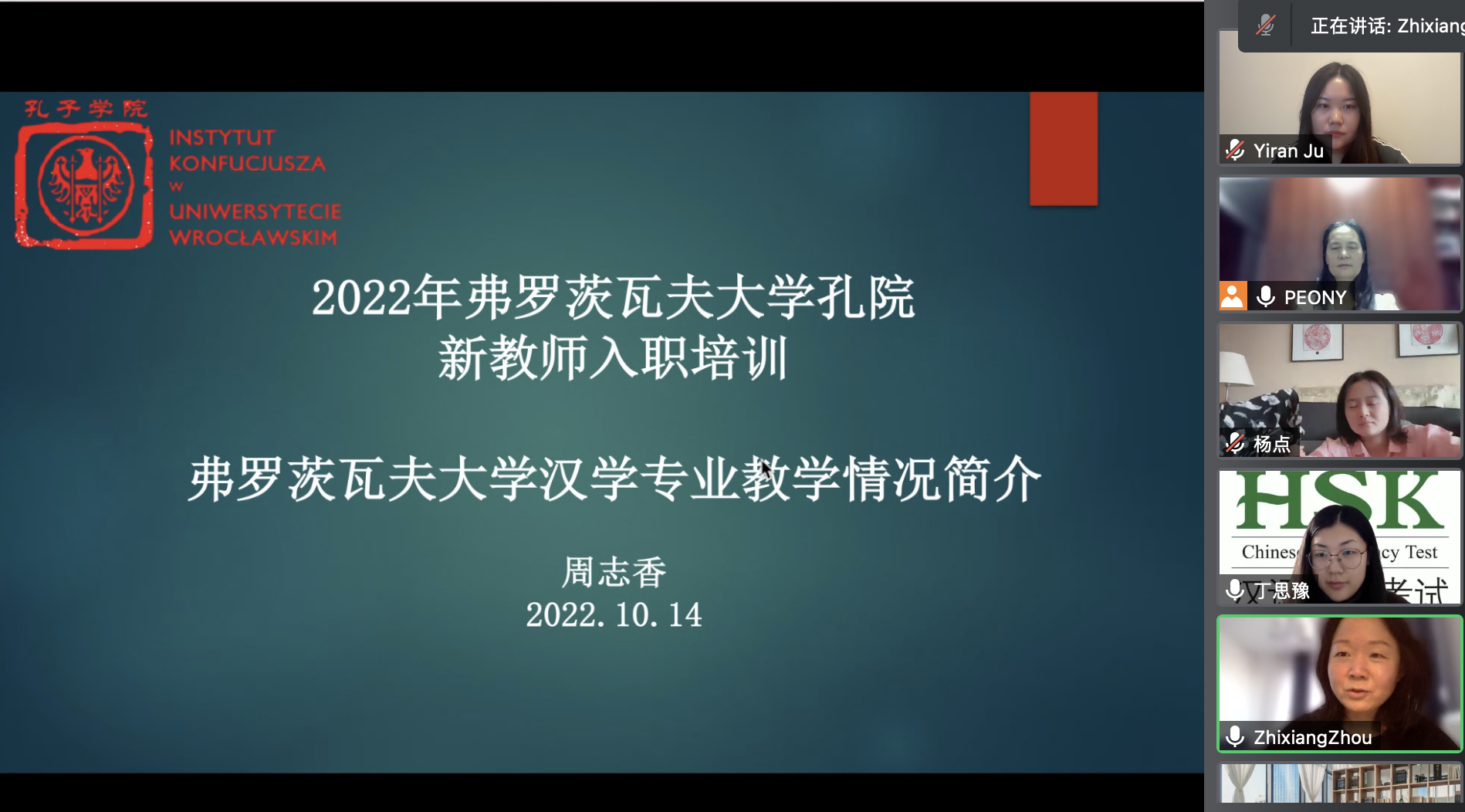 当地时间10月14日下午16点,孔子学院召开线上新任教师及志愿者到岗欢迎会暨入职培训会,旨在使新任教师、志愿者尽快适应新环境,了解孔院教学工作和相关文化活动。中方院长夏国香主持会议,她对三位新任教师的到来表示热烈欢迎,并向三位新任教师志愿者介绍孔院的基本情况,衷心希望三位新老师在健康平安的基础上,与孔院全体人员齐心协力做好孔院各项工作。