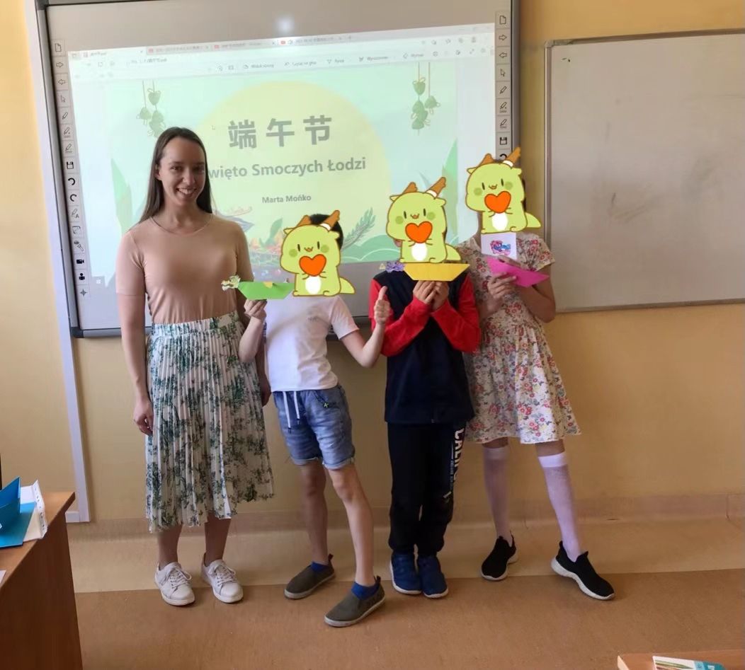 端午节期间,波兰弗罗茨瓦夫孔子学院教师Marta Mońko(莫莉卡)在自己任教的几个小学教学点都举办了线上或线下活动。90小学、波德小学、Prusice小学及Ostrów Wielkopolski4小的学生有机会了解中国传统节日端午节并体验一些习俗。