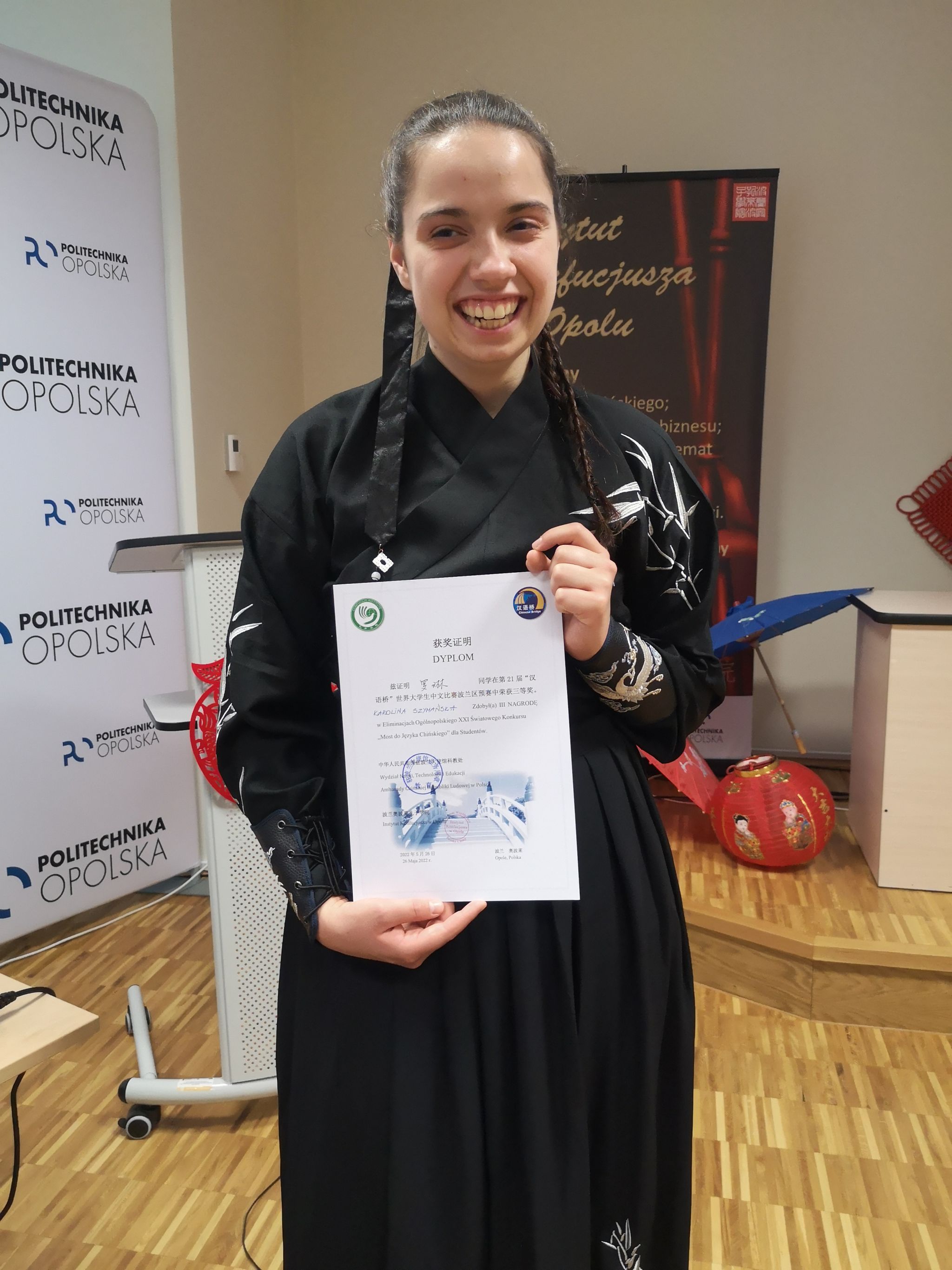 获得本届“汉语桥”世界大学生中文比赛波兰赛区三等奖的孔院学员罗琳(Karolina Szymańska)在赛后说:“今天是一场名为‘汉语桥’的比赛,对弗罗茨瓦夫大学孔院的七名学生来说,这也是一场冒险,是一段疯狂的快乐时光。比赛不仅激动人心,更重要的是与来自波兰各地的汉语学习者见面、交流,相互融合。我很幸运地遇到支持我的孔院老师和同学们,这次比赛给了我学习更多中国文化和语言的动力,希望有一天我能像用母语一样用汉语进行交流,能将中国的故事告诉更多的人。”