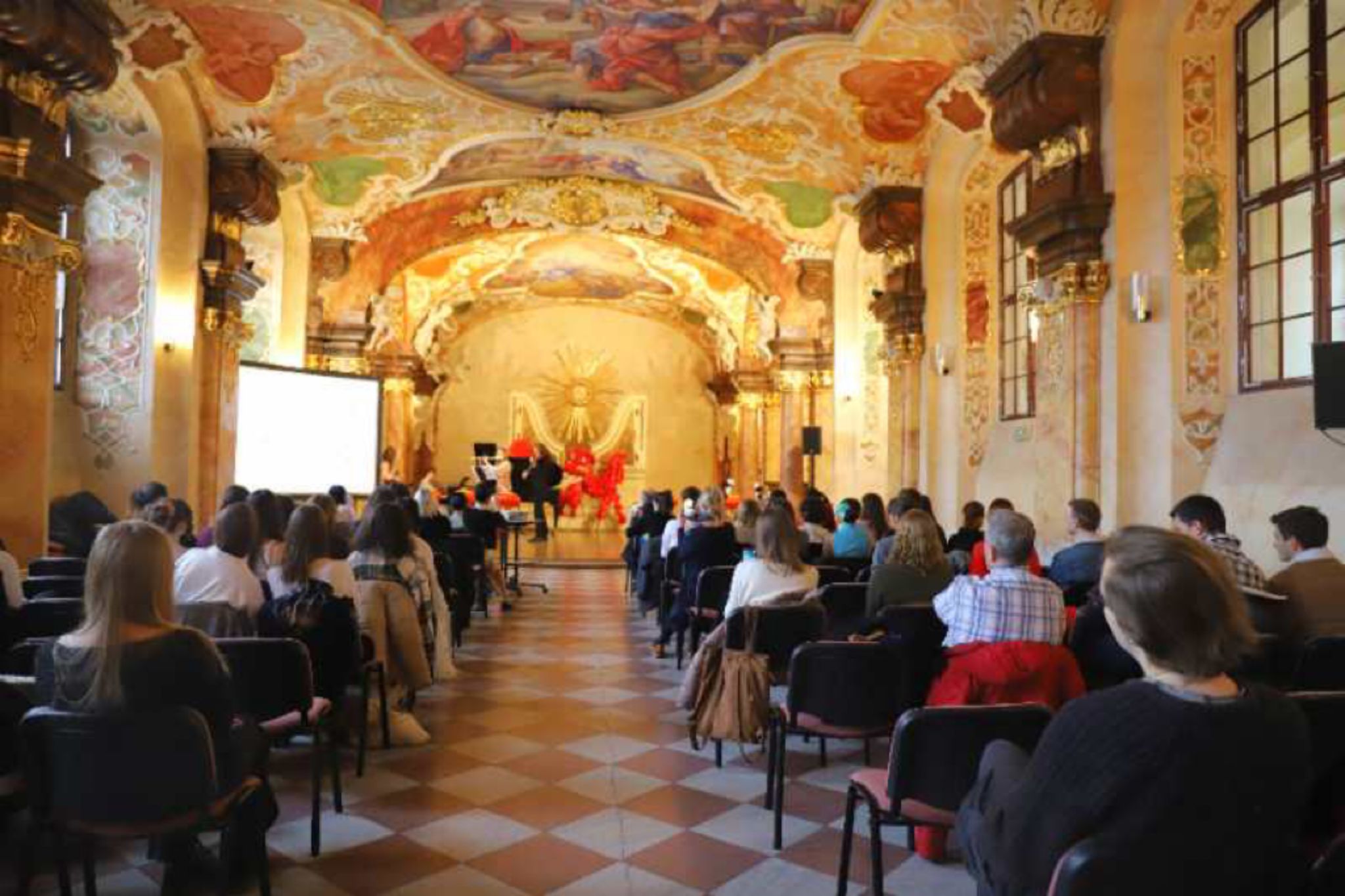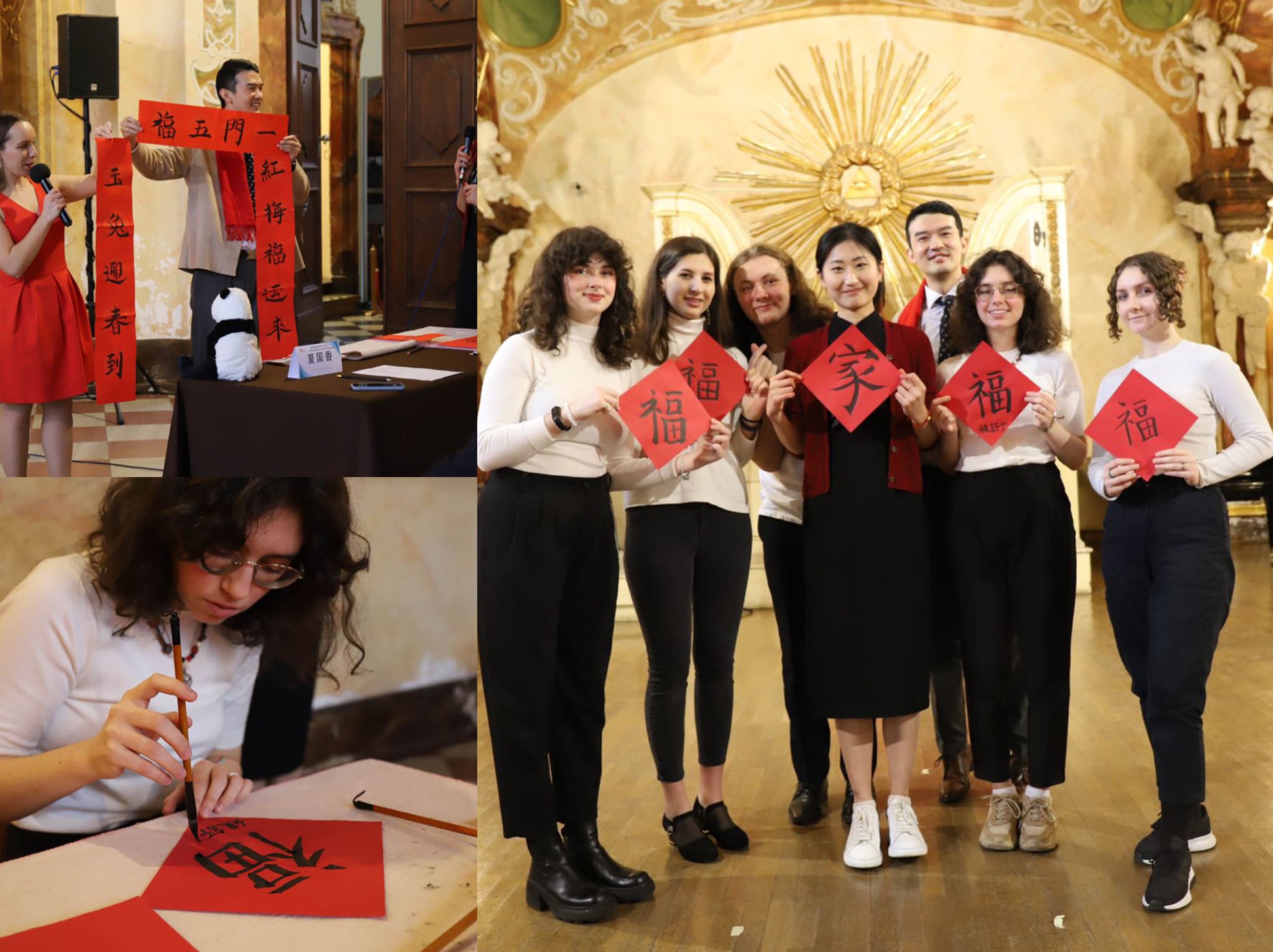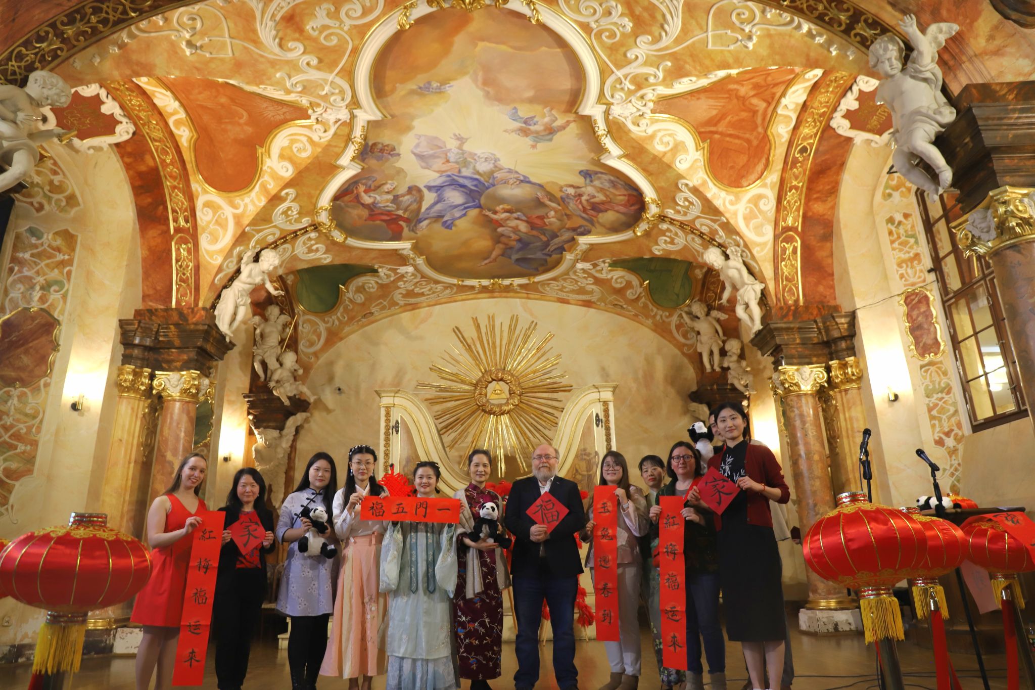 金虎送春归,玉兔迎春到。当地时间2023年1月28日正午12时,由弗罗茨瓦夫大学孔子学院主办的2023年春节联欢会正式开始。弗大汉学系学生弥恬风(Daniel Mickiewicz)、韦唯(Marta Weber)等学员带来小提琴、钢琴等乐器联奏,在开场乐章《梁祝》的美妙音符中,兔年春节联欢活动伴随着冬日暖阳如约而至。孔院波方院长Gościwit Malinowski教授、中方院长夏国香副教授等嘉宾悉数到场,孔院学员及家人近百人欢聚一堂,弗罗茨瓦夫大学音乐厅华灯异彩,节目纷呈。