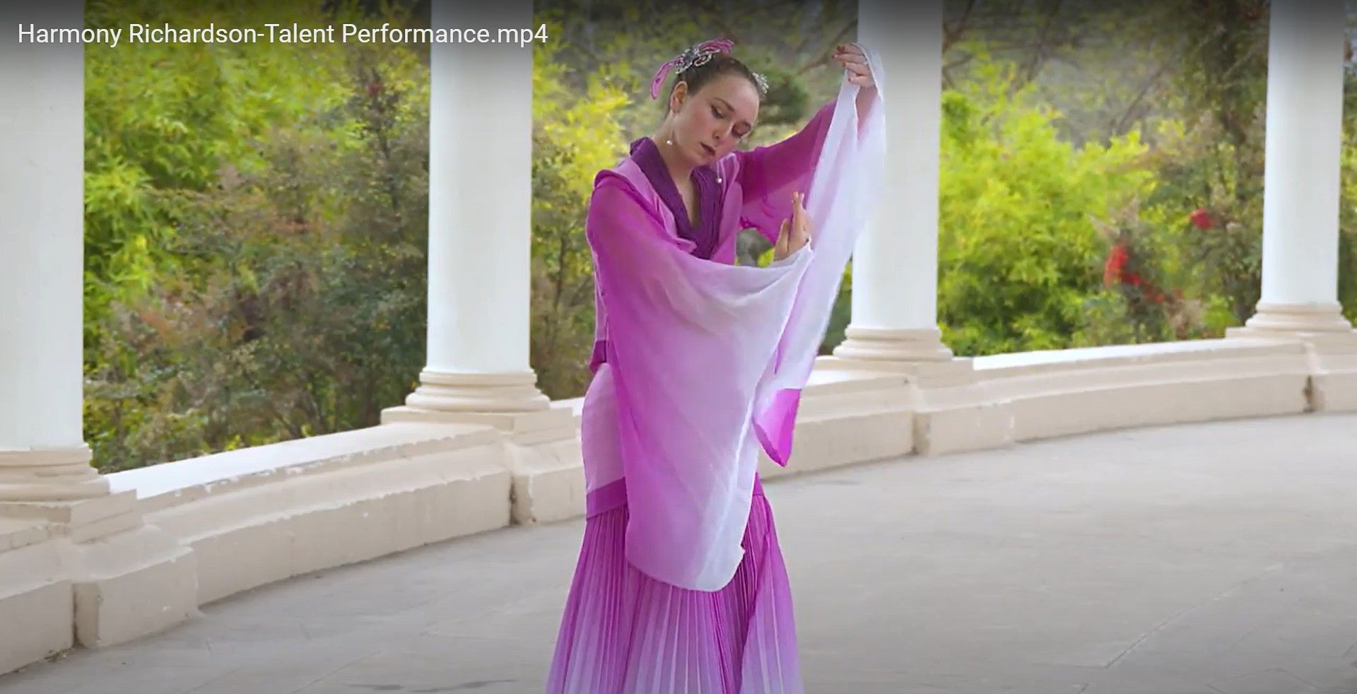 图三 李曼宁(Harmony Richardson)表演中国传统舞蹈《越女吟》