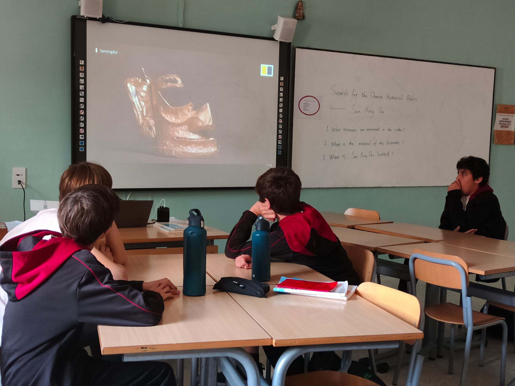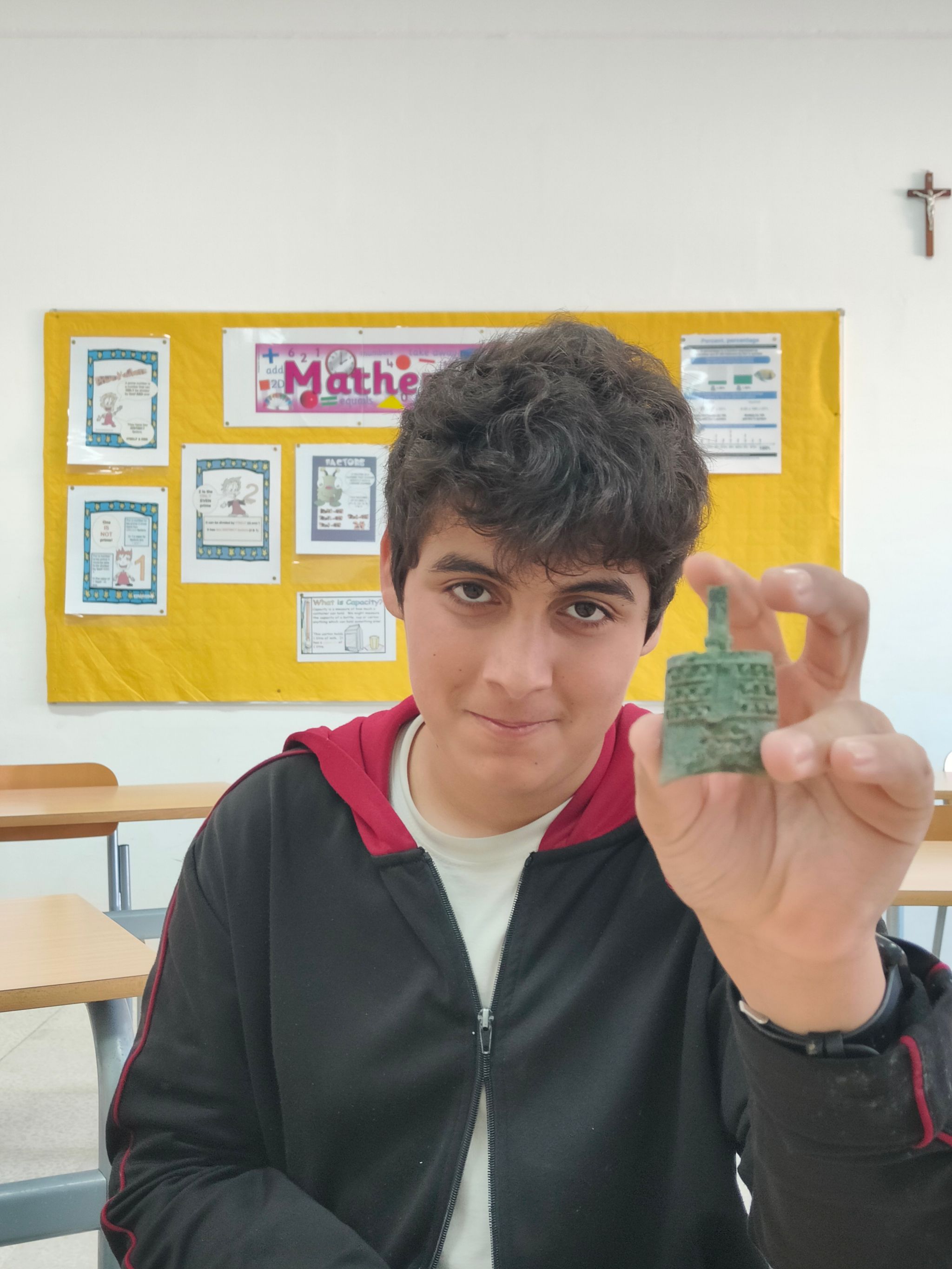 借此契机,马耳他大学孔院的柴晓霄、李小雨和吴思薇老师策划了一场随堂考古体验活动。活动在St. Aloysius、St. Martin、St. Clare三所中学的中文班开展。老师们一边播放视频,一边讲解,向大家重点介绍了三星堆遗址的发掘,同时也介绍了四羊方尊、司母戊鼎和编钟的相关历史。同学们看着视频中的三星堆青铜树和巨大的青铜面具,一方面惊讶于中国古人的制造技术,另一方面也在疑惑为什么三星堆青铜物件的形象都如此不同寻常。初步了解了三星堆文化之后,大家纷纷表示,如果以后有机会去四川,除了大熊猫,一定要去三星堆博物馆看看。