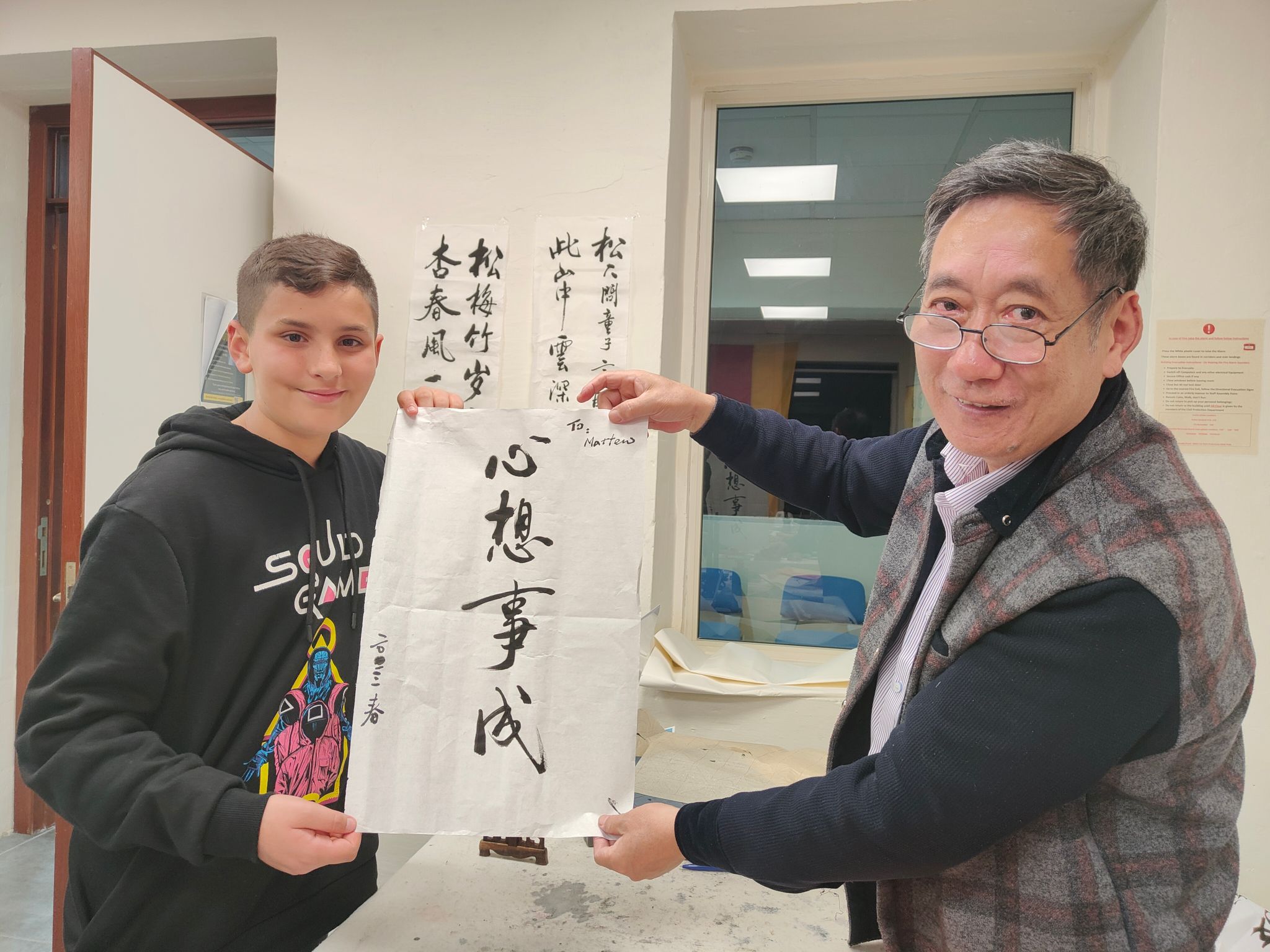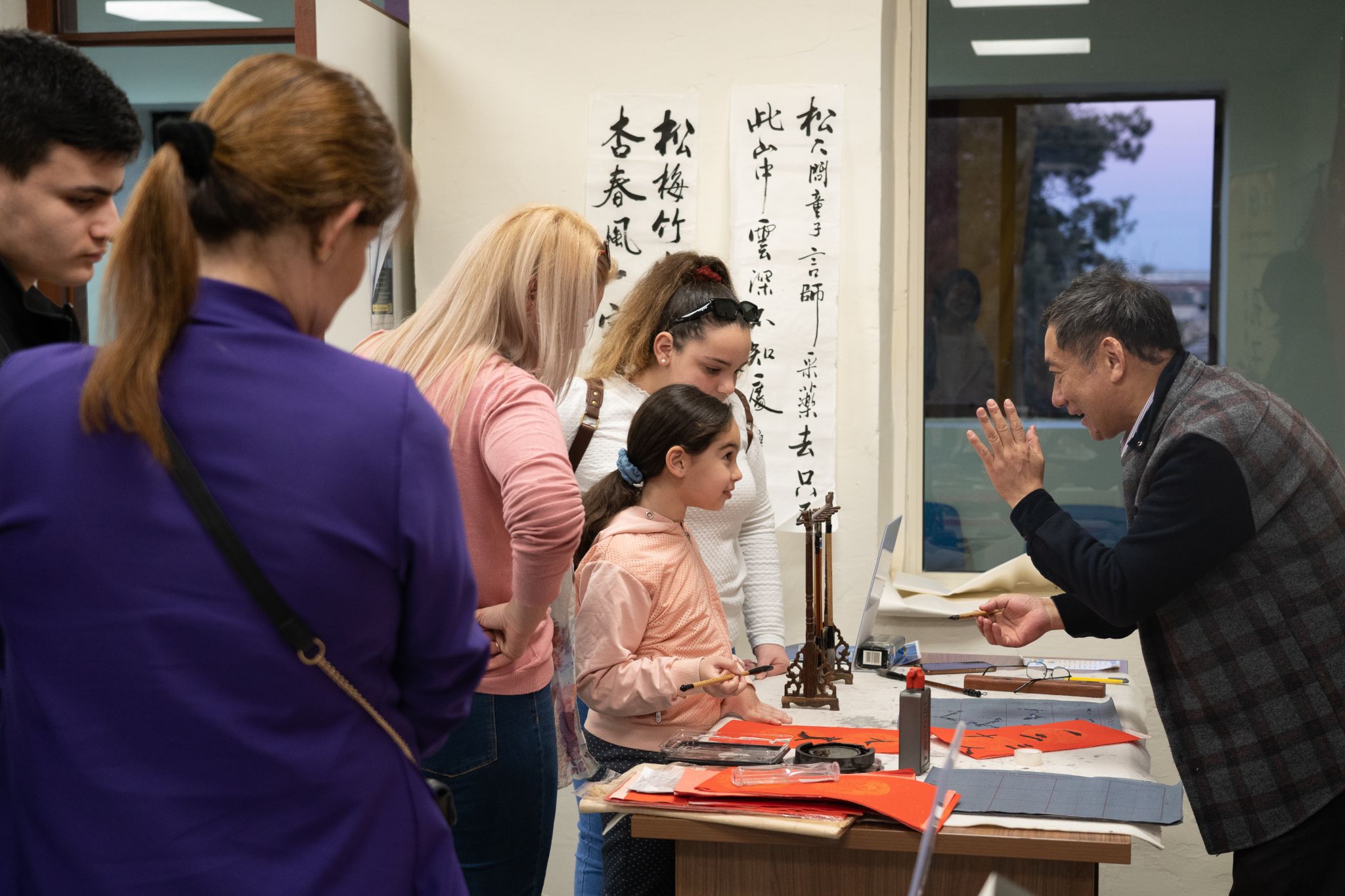 书法展台吸引了许多人驻足围观,大家跃跃欲试,挑战用毛笔书写汉字。经过纪能文老师的指导与讲解,不少同学在体验汉字书写的过程中,还了解了造字方法,对汉字的发展演变历史有了更直观的认识。体验者们纷纷表示,通过这一活动对中国书法的认识更加深入了,对中国文化的底蕴也有了更深刻的理解。