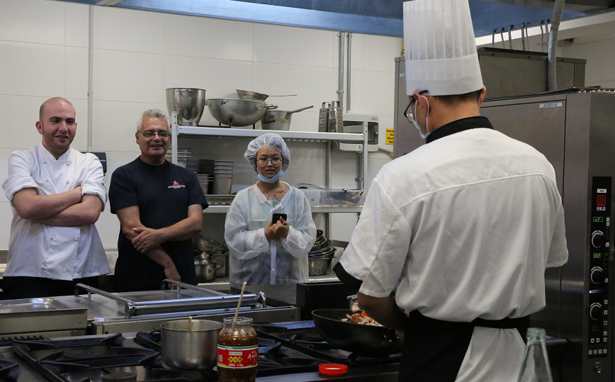 活动中,吕达焰师傅向ITS的老师们演示如何制作中医药膳,山楂枸杞茶、木耳黄花菜、黄芪枸杞鸡汤、蜜汁莲子红枣、秘制排骨……一道道精心制作的药膳和吕师傅近乎杂技般的烹饪动作赢得了围观师生们阵阵掌声,大家聚集在药膳面前拍照、讨论,争相和来自中国的大厨合影,不断请教菜品用了什么调料、有哪些中药、有什么功效等,吕师傅一一作答。活动的最后,听众们一边品尝美味的药膳,一边表达自己对中医文化和药膳文化的喜爱,现场气氛异常热烈。