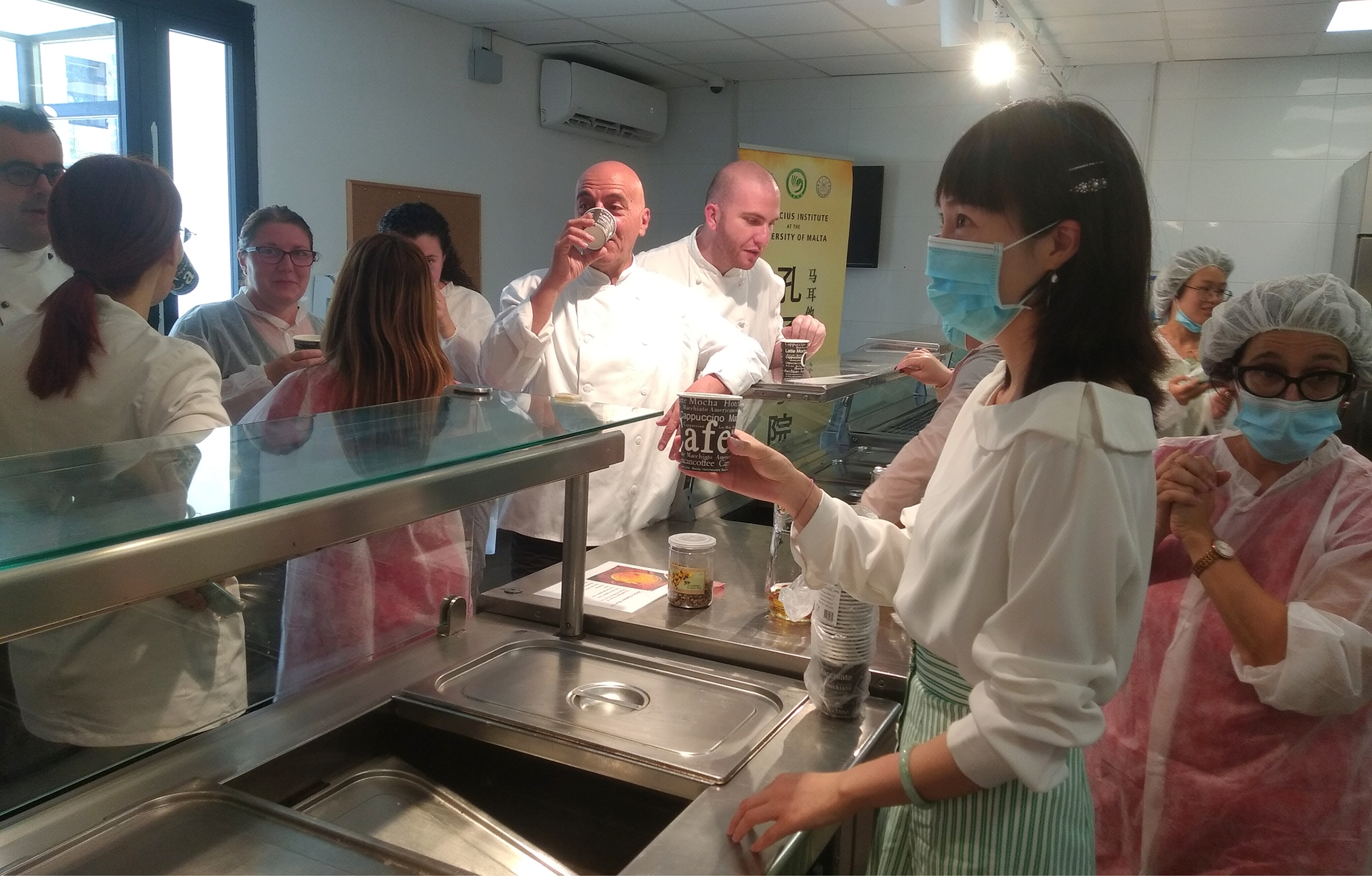 6月9日上午,马耳他大学孔子学院2022年度“中医中餐马耳他行”系列活动在马耳他旅游学院(Institute of Tourism Studies)揭幕,这是系列活动的第二站。本次活动以“传承药膳文化,共筑健康世界”为主题,由孔子学院、马耳他地中海中医中心、马耳他旅游学院联合组织,吸引了马耳他旅游学院烹饪艺术专业的20余名教师参加。