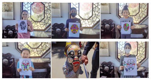 脸谱体验区为小朋友们准备了画笔和空白脸谱,孩子们用色彩填涂出他们心中的脸谱,有的精致细腻,有的用色大胆,还有的孩子在听完老师讲解后,领悟到了中式传统美学的对称美,所以涂画脸谱时也更加注重于脸谱的对称。