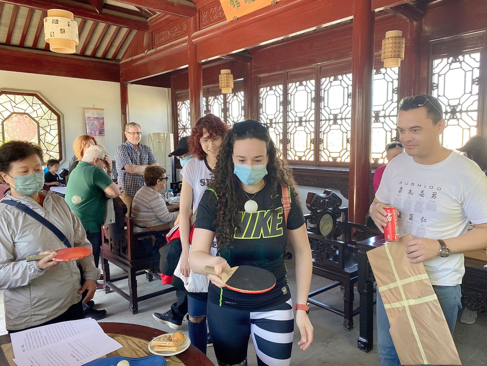 游戏体验区的华容道和乒乓球吸引了大小朋友们。面对复杂的华容道,大人们坐在一旁不停摆弄,苦苦思索如何“解救曹操”;小朋友们则是把木块移来移去,到最后百思不得其解,询问老师能不能直接把“曹操”那块木板拿出来。乒乓球颠球比赛更是在现场来了一场中马友谊赛。很多从未接触过乒乓球的马耳他小朋友,颠两三下就不能继续了,看到这里,围观的中国小朋友亲自上手教学,还表演了一口气颠二十几下球,引得小伙伴们羡慕不已。