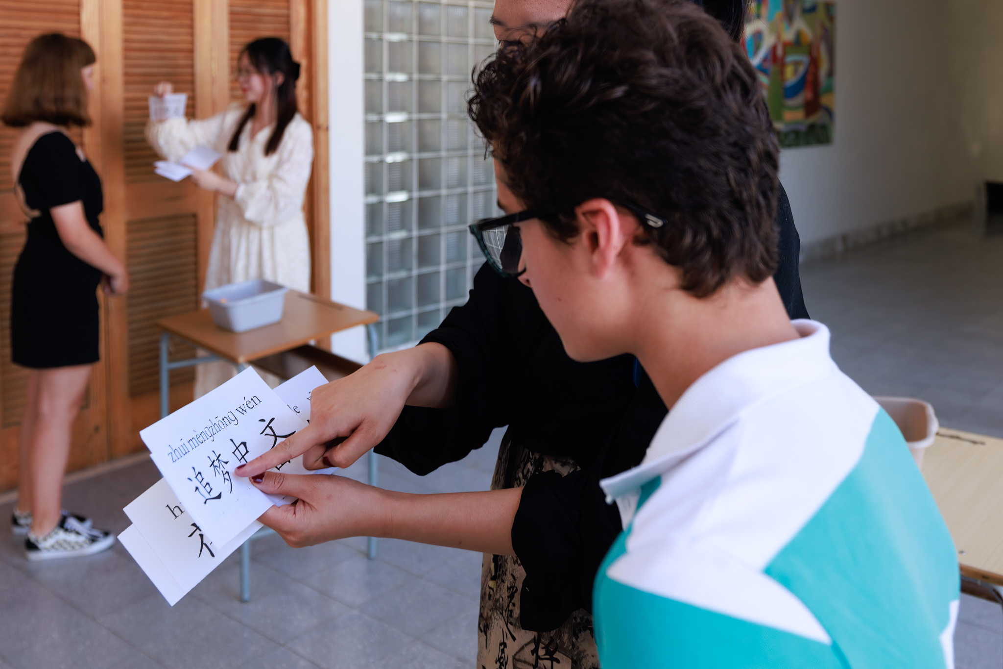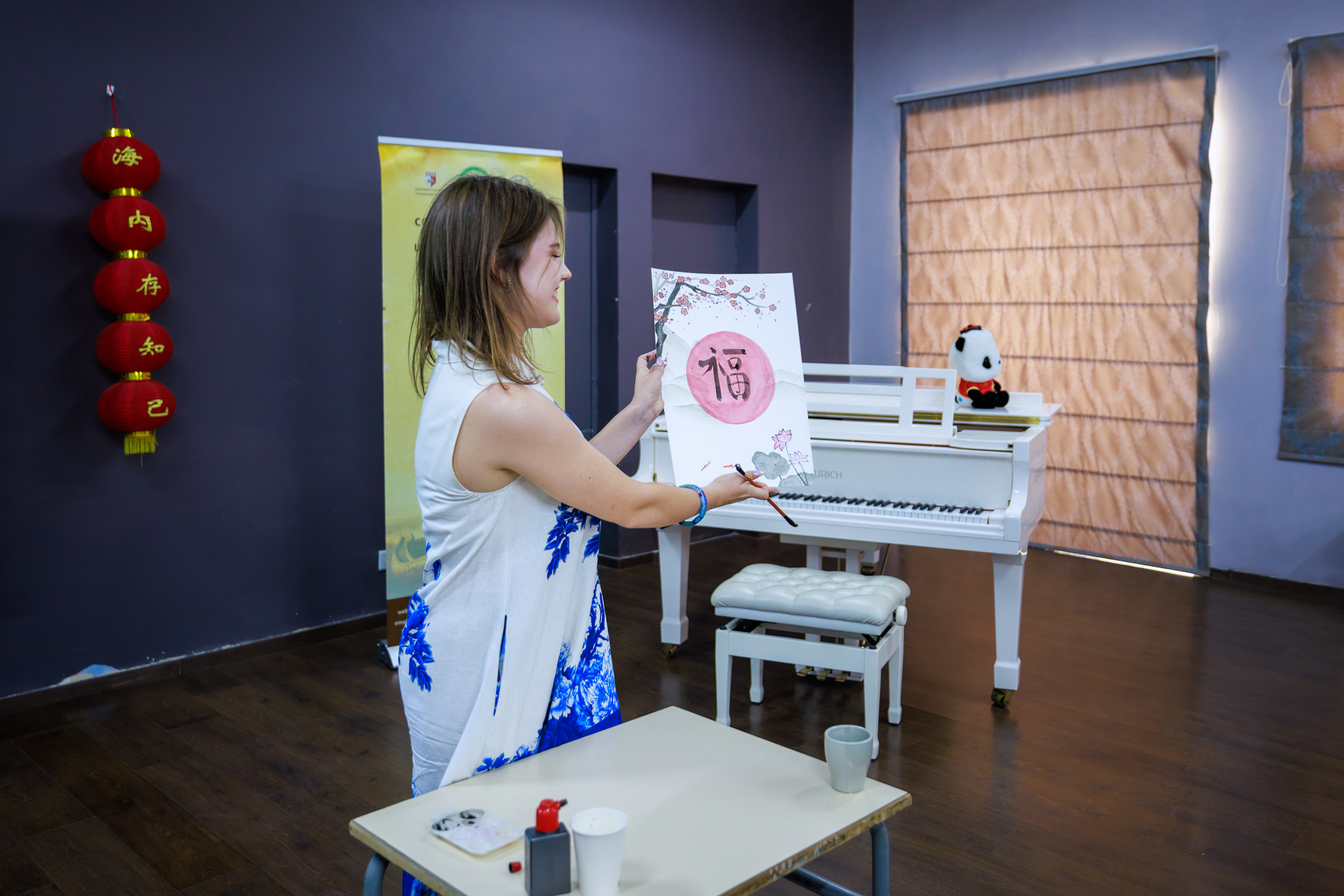 才艺展示部分,学生们围绕中国文化,带来了书法、朗诵以及不同乐器演奏的中国歌曲等。在等待比赛结果的时间里,所有到场的学生们还体验了筷子夹乒乓球等趣味游戏。