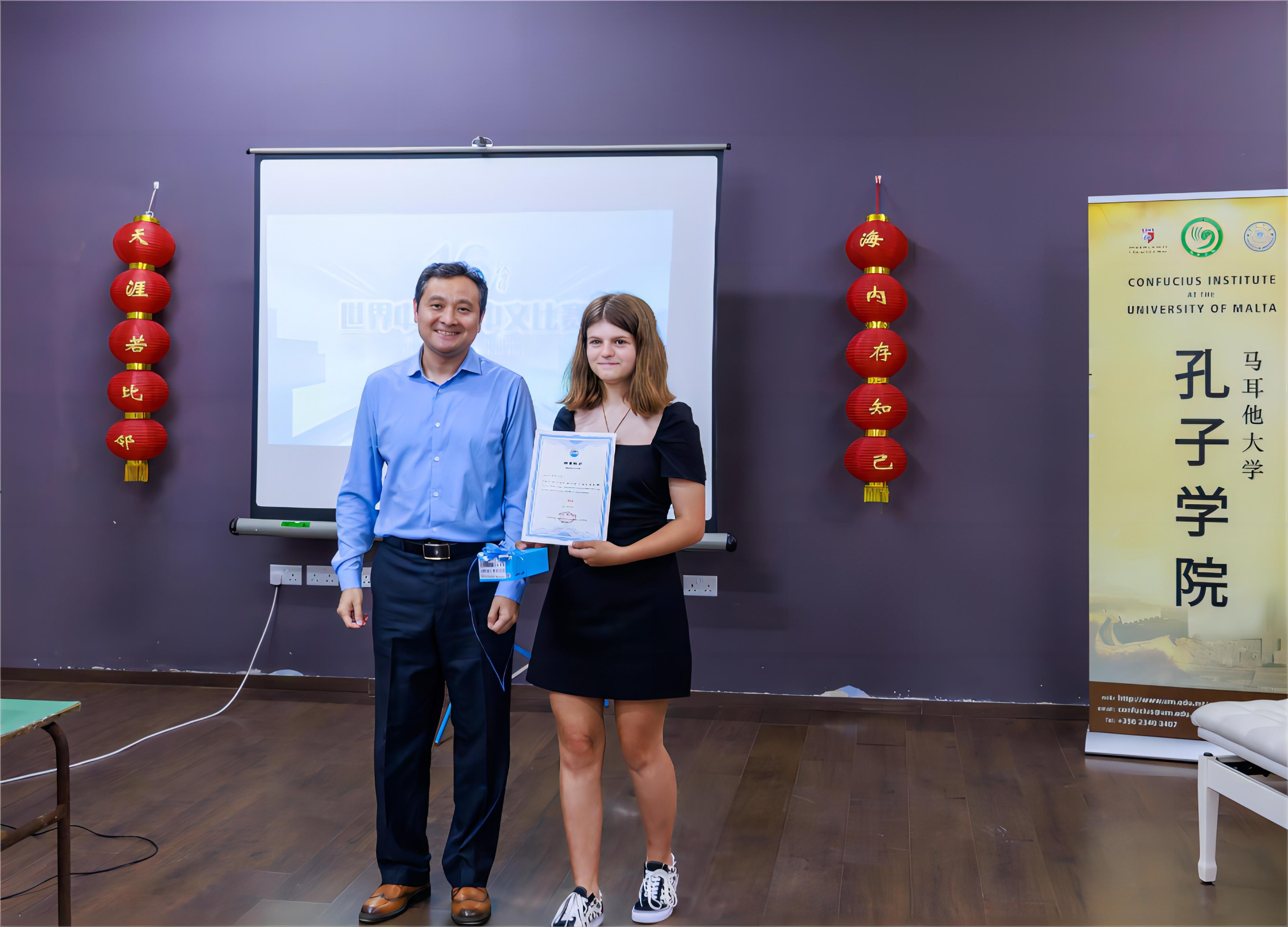 最终,来自圣马丁中学十年级的学生安娜•杜比尼纳获得一等奖。安娜从2016年开始学习中文,她表示,跟她所知道的其他语言相比,中文是一门很难的语言,但是很有意思,所以她和父母商量之后,决定挑战自我,学习中文。同时,作为马耳他赛区第一名的学生,安娜将在今年暑期代表马耳他赴中国参加中学生汉语桥全球决赛。
