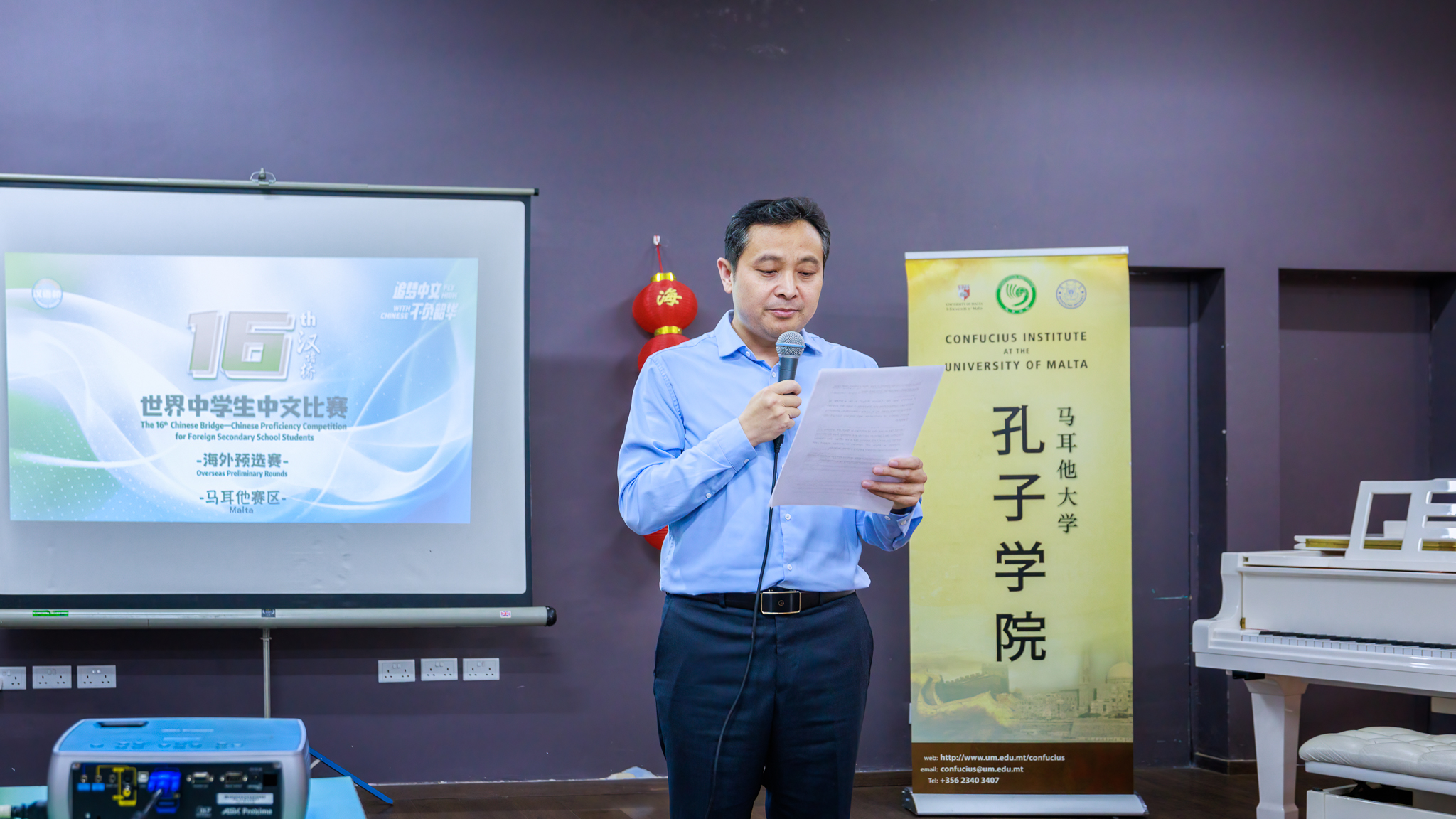 中国驻马耳他大使馆彭熠军参赞出席本次活动,他提到“语言体现了一个民族的文化价值。期待汉语桥能成为沟通之桥、理解之桥、友谊之桥,希望同学们能做两国友谊的‘小大使’,成为文明互鉴的促进者和人民友好的传承者。”