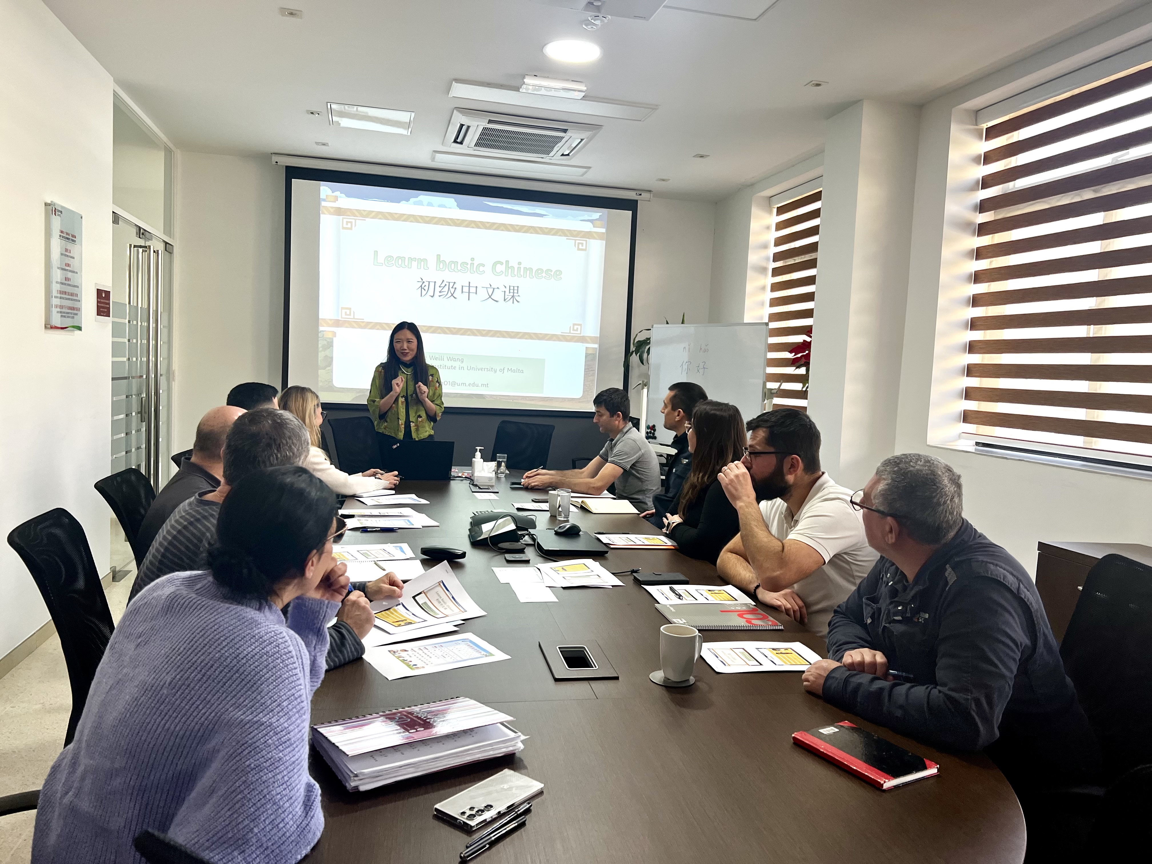本次培训项目由马耳他大学孔子学院精心准备,由孔院专职教师王维丽主讲,旨在通过系统化的中文教学,提升外籍员工在工作中的语言沟通能力,加深他们对中华文化的理解。课程内容丰富多样,涵盖了基础的汉语拼音学习、实用词汇积累、日常交际用语训练,以及中国传统节日、风俗习惯、历史文化等文化知识,力求全方位提升学员的中文水平。