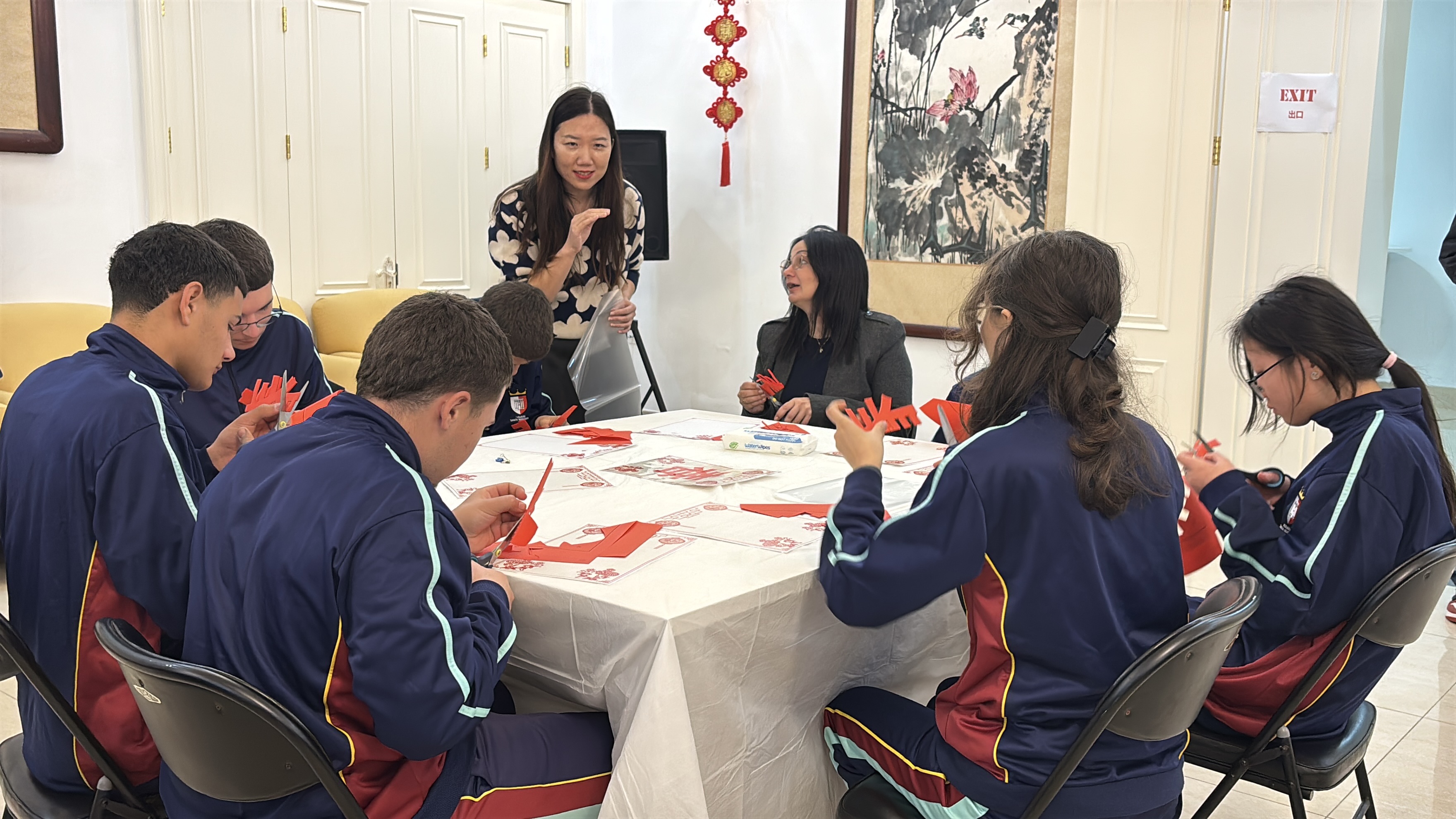 此外,孔院老师们还教授了学生们制作“春”字立体剪纸的技巧。学生们用红纸剪出立体的“春”字,象征着春天的到来和新年的希望。最后,老师们还带领学生们体验了包饺子的传统习俗。大家围坐在一起,学习如何使用筷子、包馅、捏褶,学生们捏出的饺子创意十足、独具特色,现场充满了温馨和欢乐。