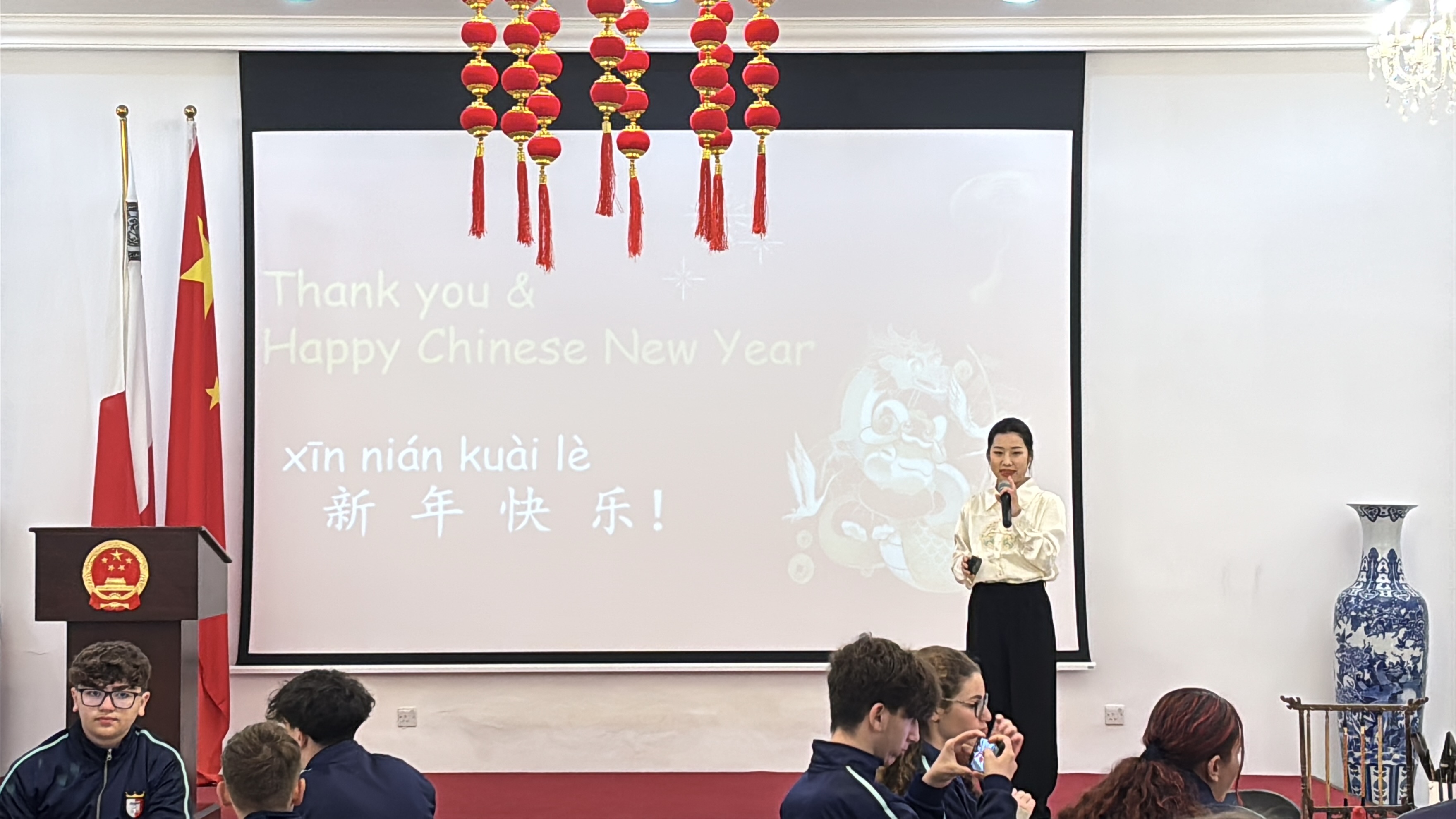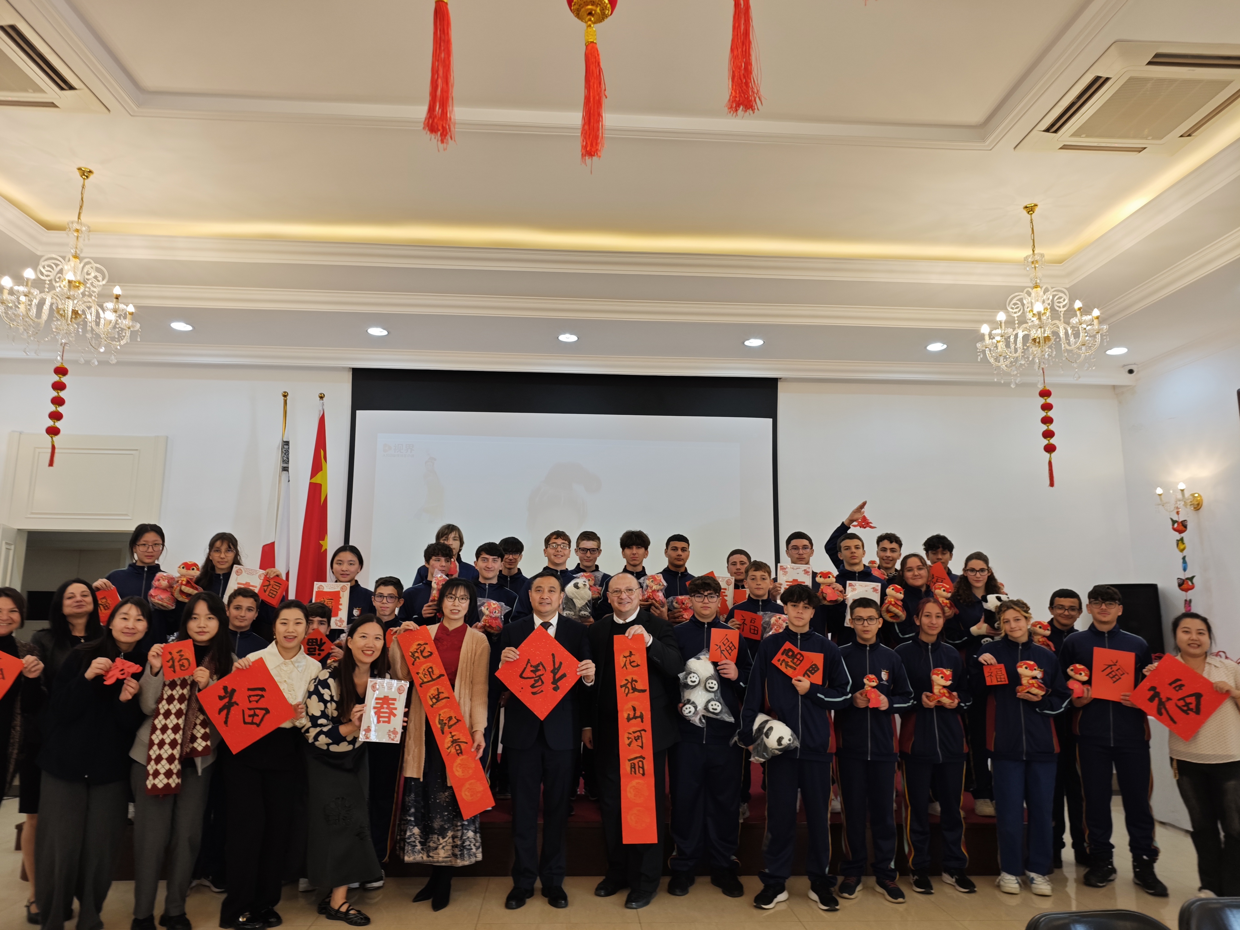 当地时间2月7日,中国驻马耳他大使馆举办了一场别开生面的中国春节文化主题开放日活动。马耳他大学孔子学院全体教师积极参与,与马耳他圣玛格丽特中学“中国角”的30余名师生共同体验了丰富多彩的中华传统文化活动。中国驻马耳他大使馆临时代办彭熠军出席活动并致辞,马耳他大学孔子学院中方院长聂爱霞参加。