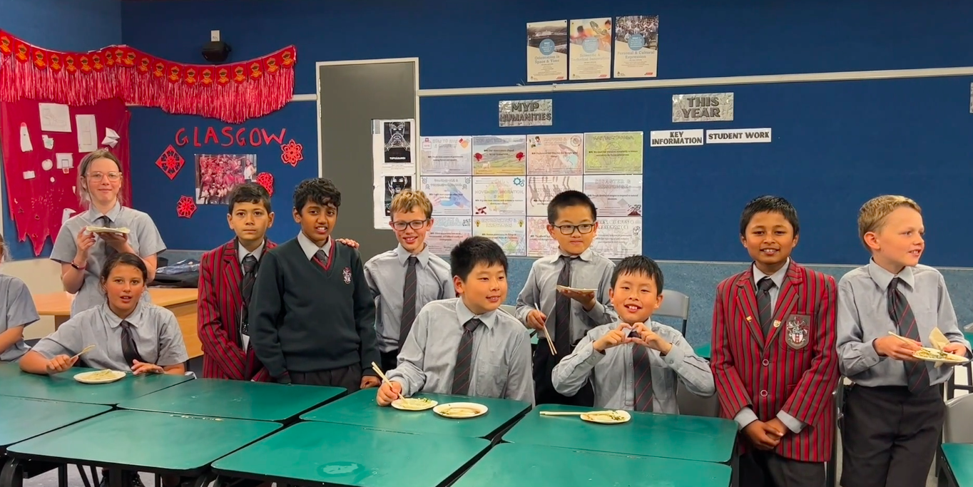斯科茨中学(Scots College)中文版的学生们品尝亲手制作的饺子