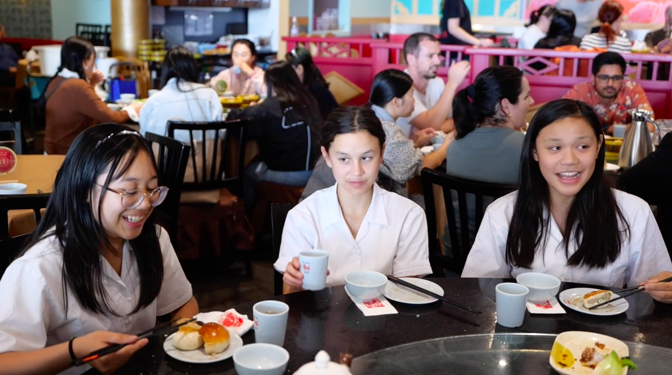 惠灵顿女子高中的学生们在中餐馆品味中式点心