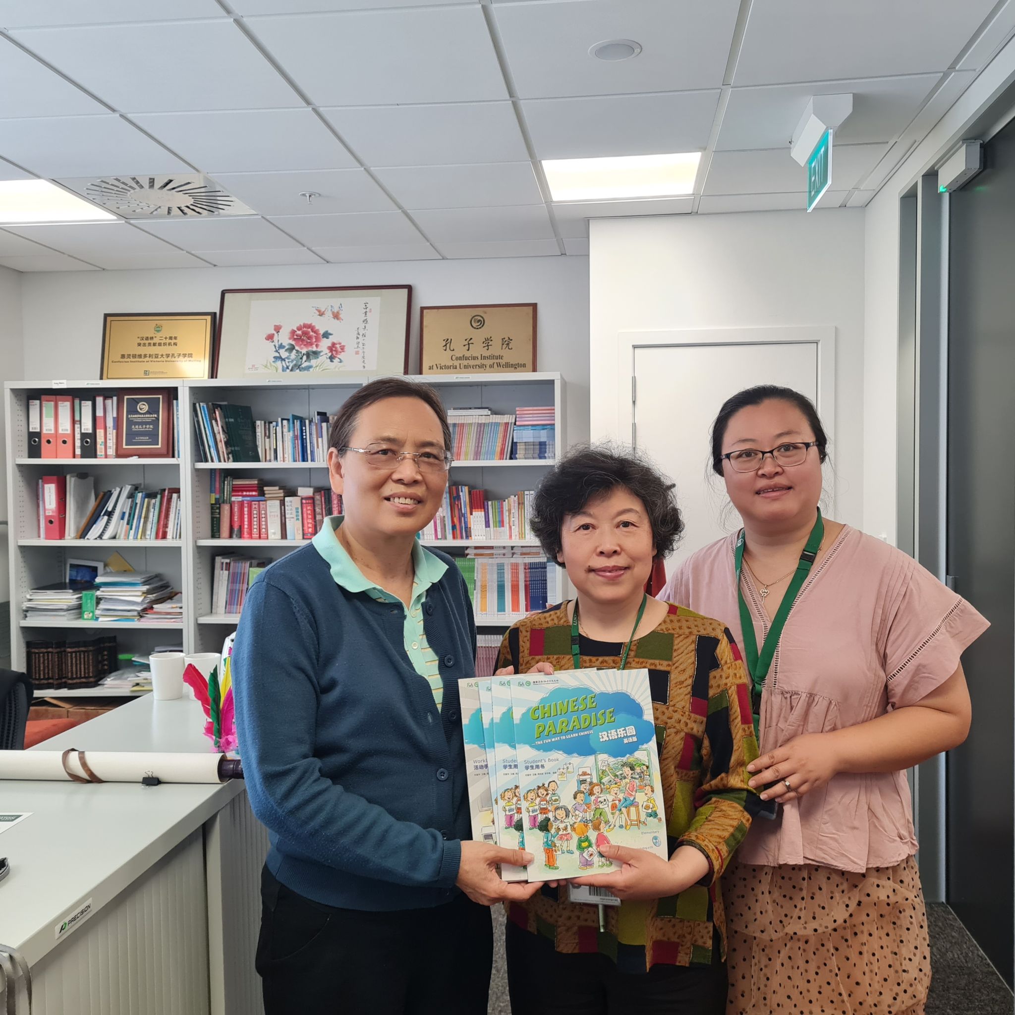 最后,赵叶珠向钱漓虹女士赠送了《汉语乐园》教材,双方表示未来将保持密切交流与互动,共同推动中文课程融入新西兰当地社区,促进中新教育与人文交流往来。