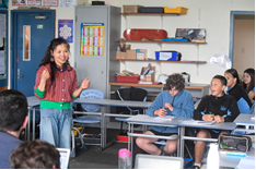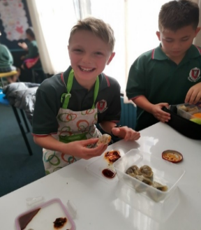 图:新普利茅斯 Highlands Intermediate中学学生在本土教师指导下制作美食