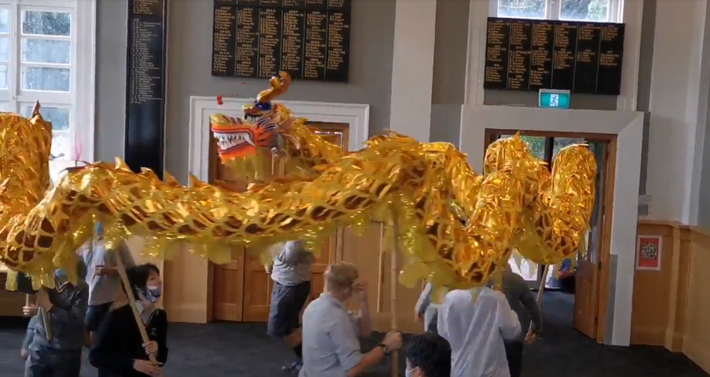 图5 惠灵顿男子高中的学生们体验舞龙